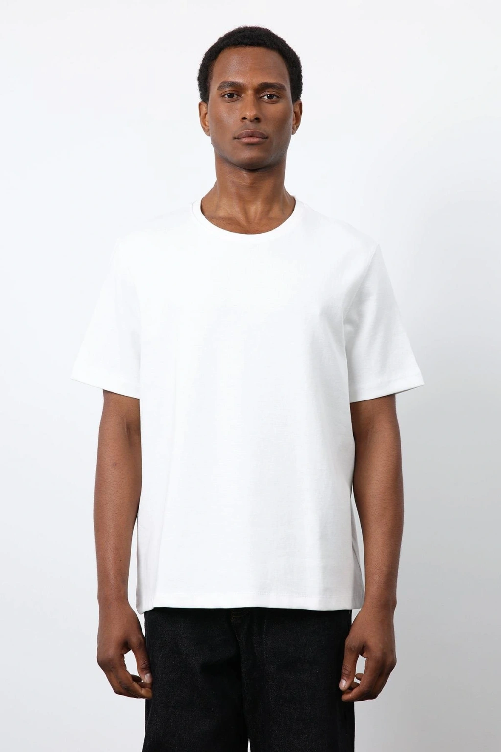 Erkek Normal Kalıp Bisiklet Yaka Thşört- Beyaz