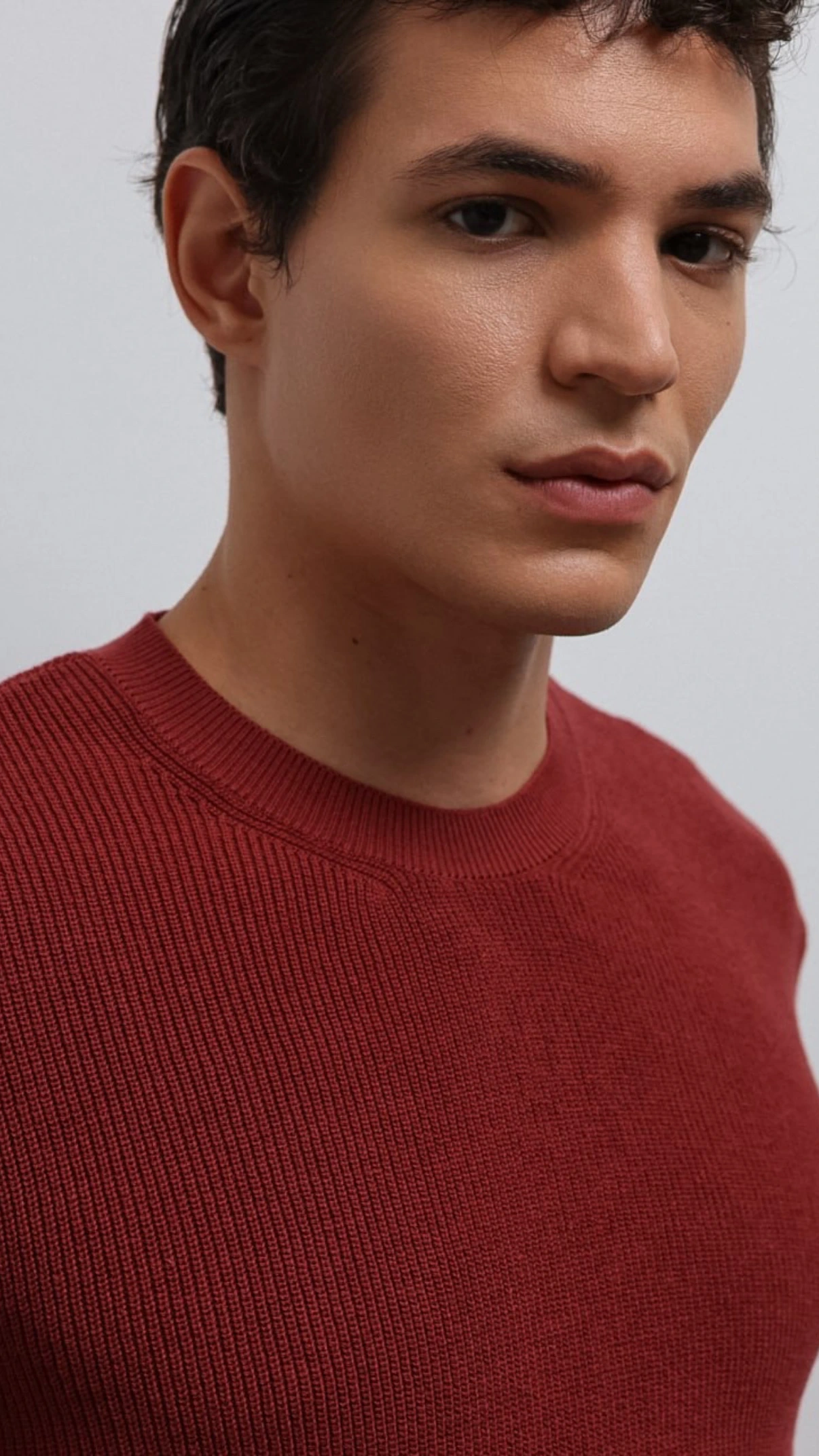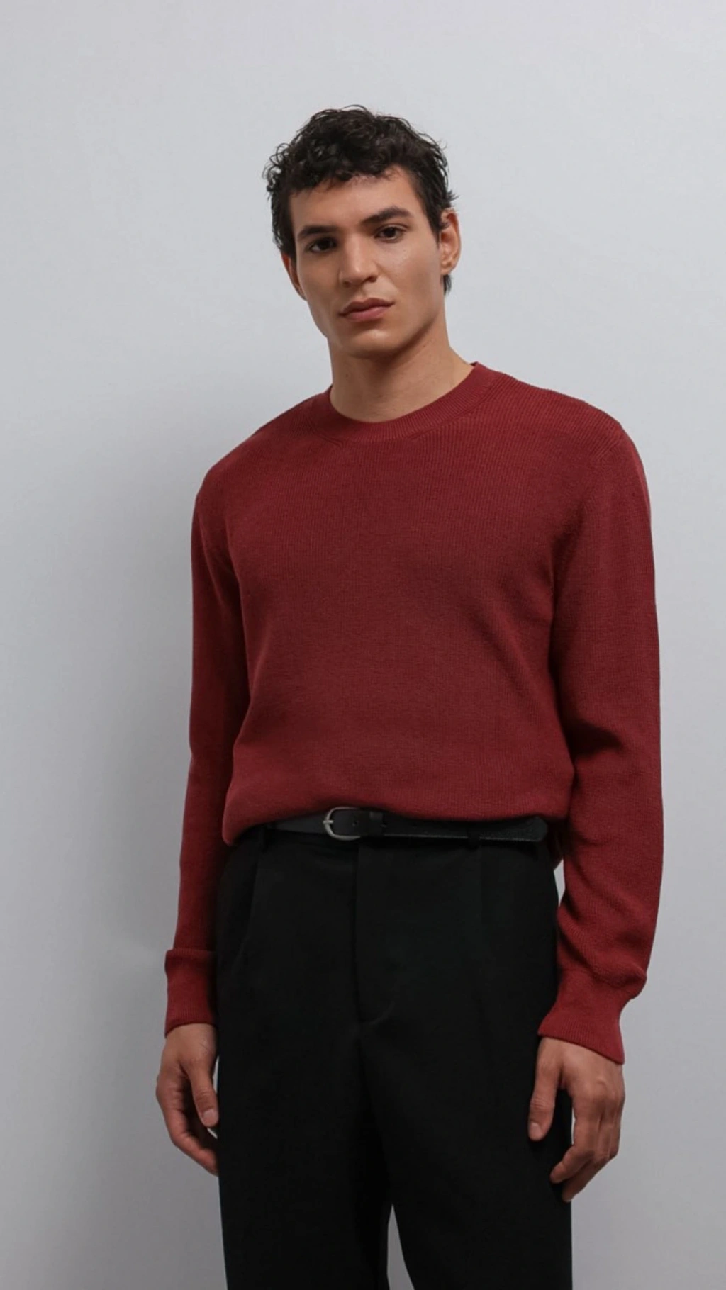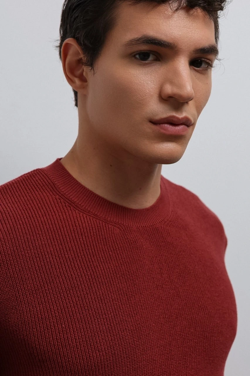 Erkek Normal Kalıp Bisiklet Yaka Triko Kazak -Kırmızı