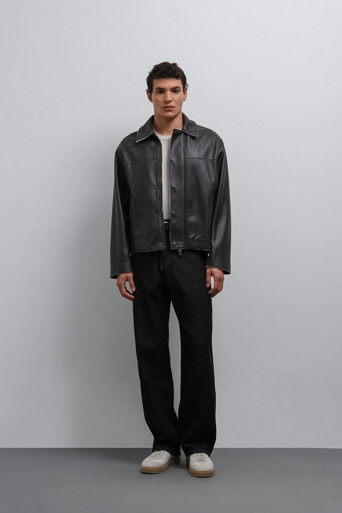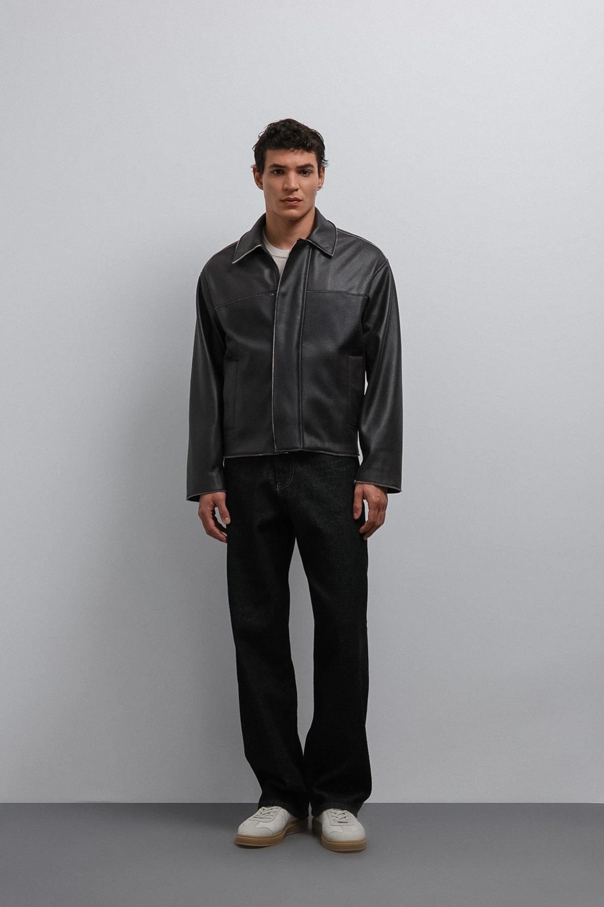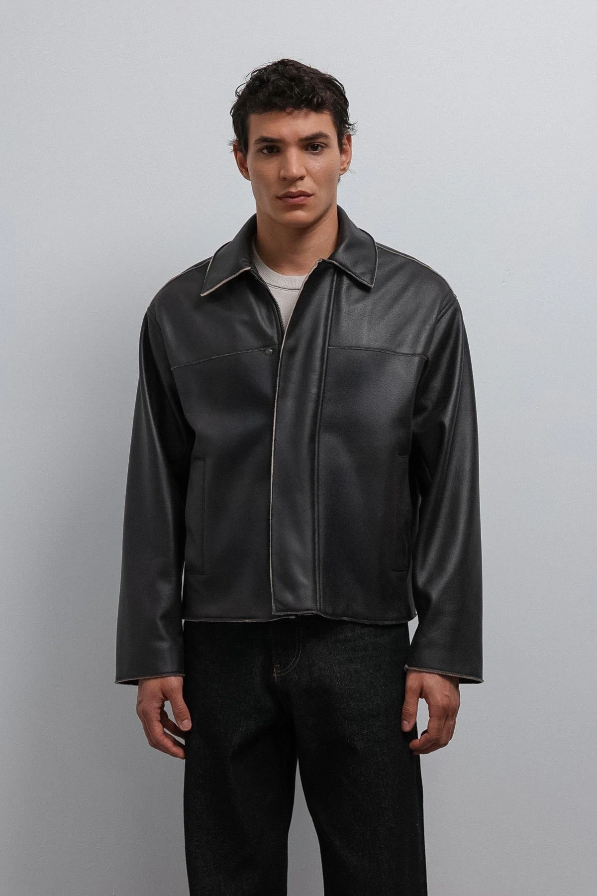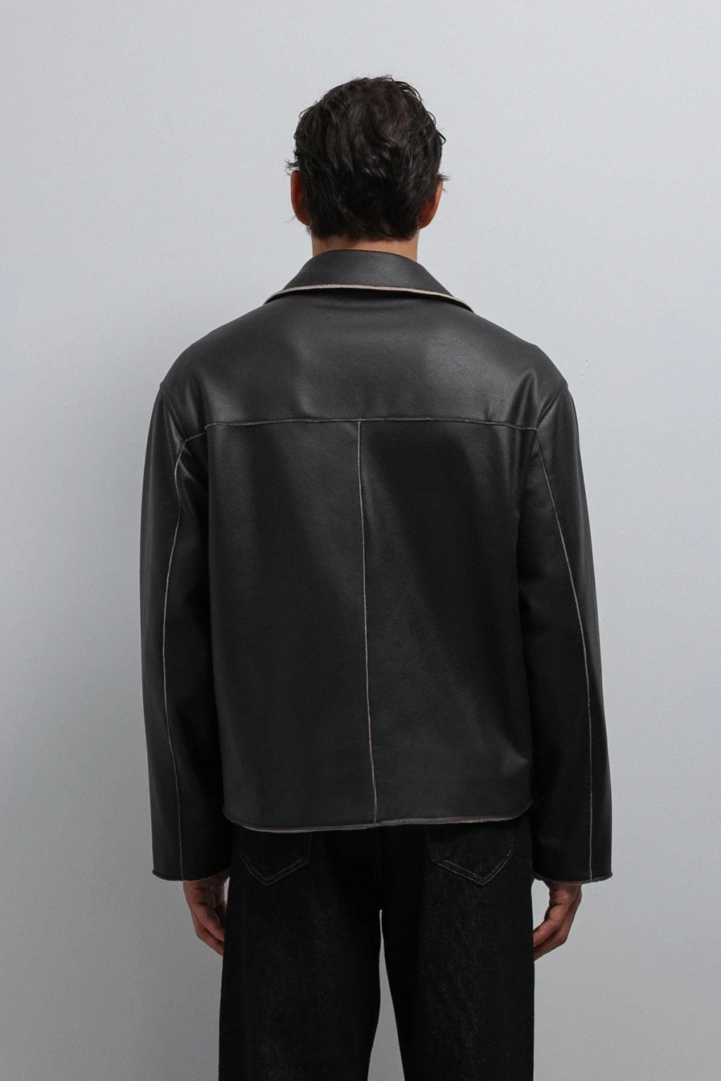 Erkek Normal Kalıp Biyeli Nubuk Deri Mont- Siyah