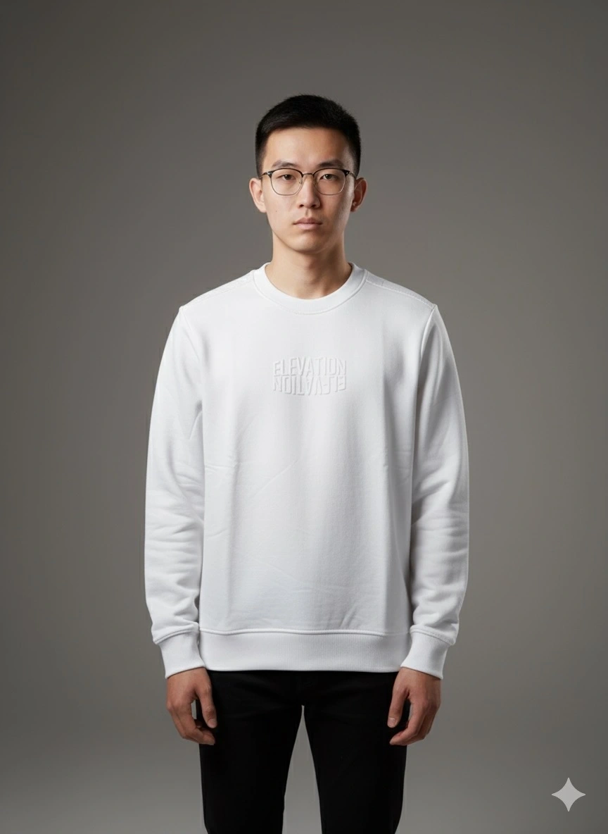 Erkek Normal Kalıp Elevatıon Yazılı Sweat- Beyaz