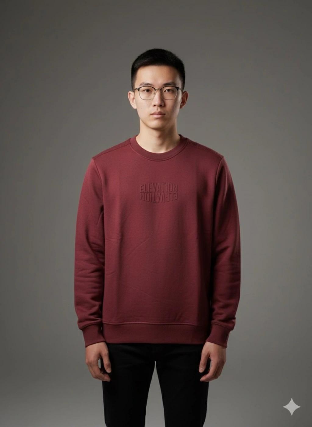 Erkek Normal Kalıp Elevatıon Yazılı Sweat- Bordo