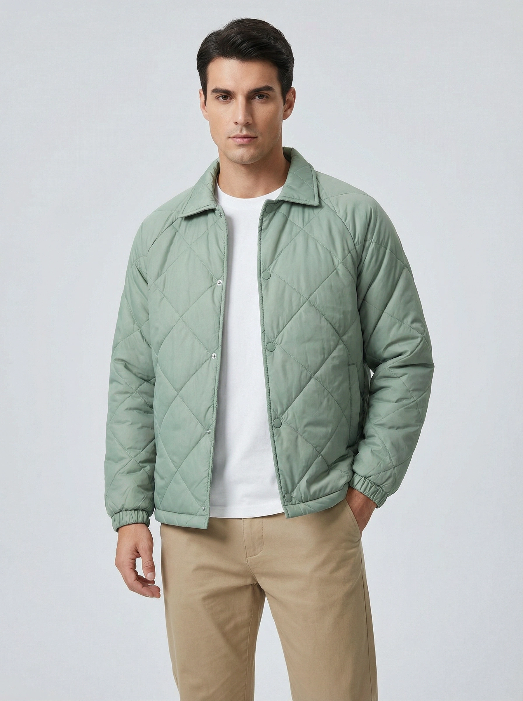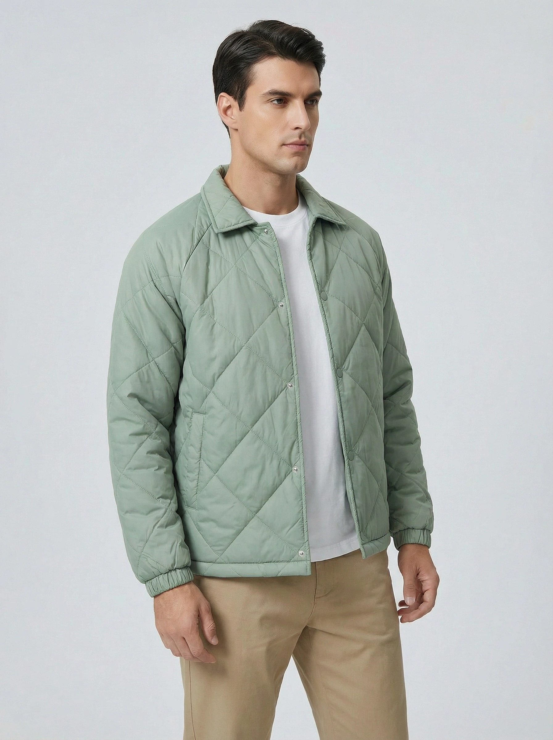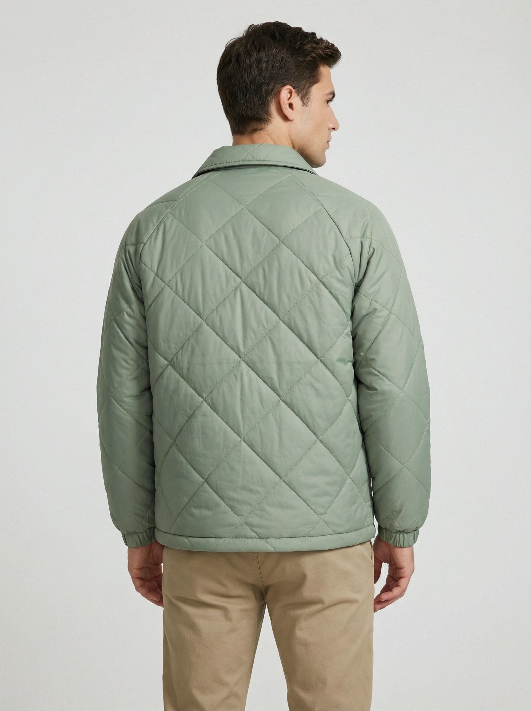 Erkek Normal Kalıp Jel Dolgu Desenli Mont - Yeşil