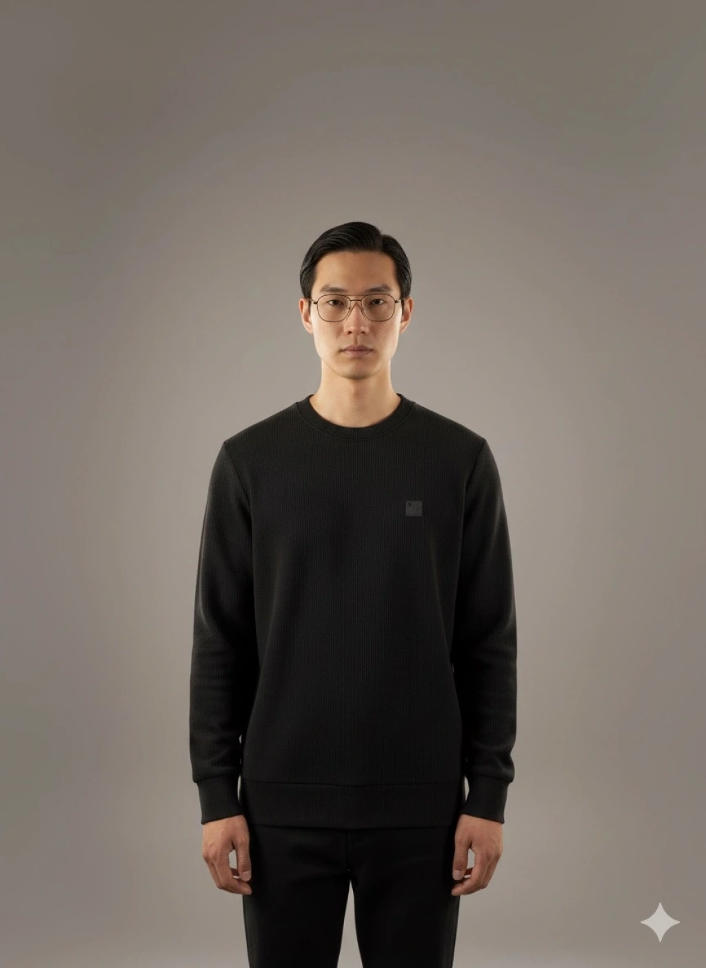 Erkek Normal Kalıp Kadife Kumaş Sweat- Siyah