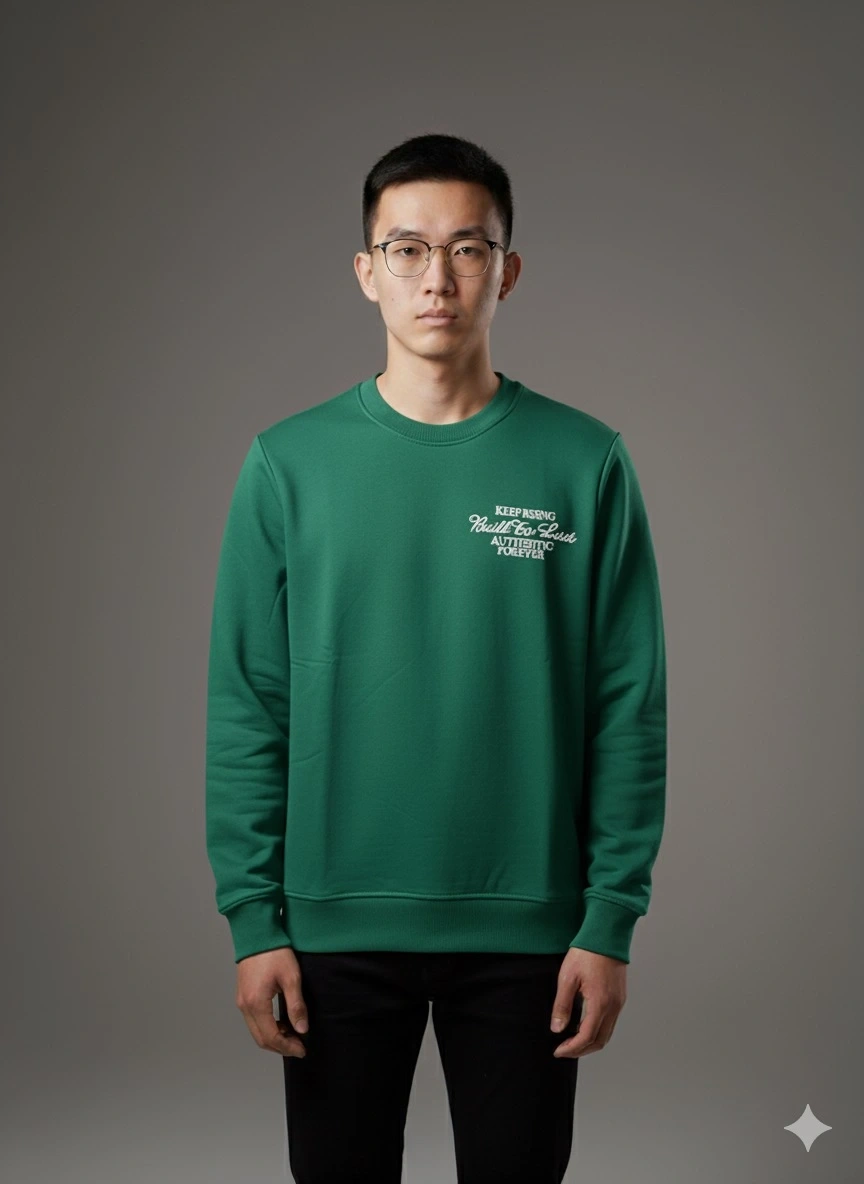 Erkek Normal Kalıp Keep Rısıng Yazılı Sweat- Yeşil