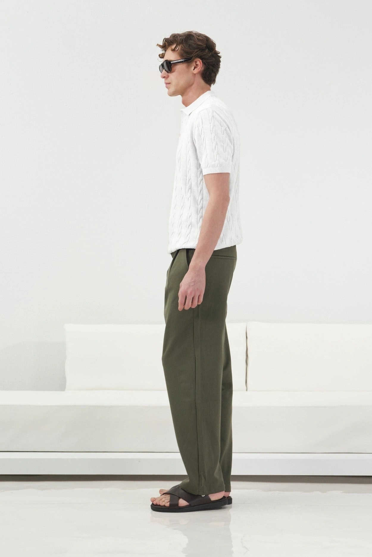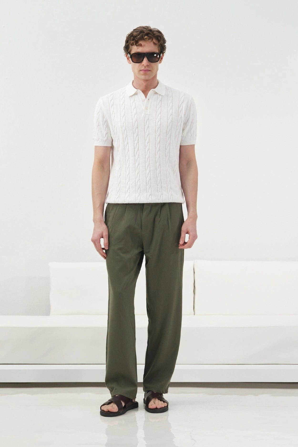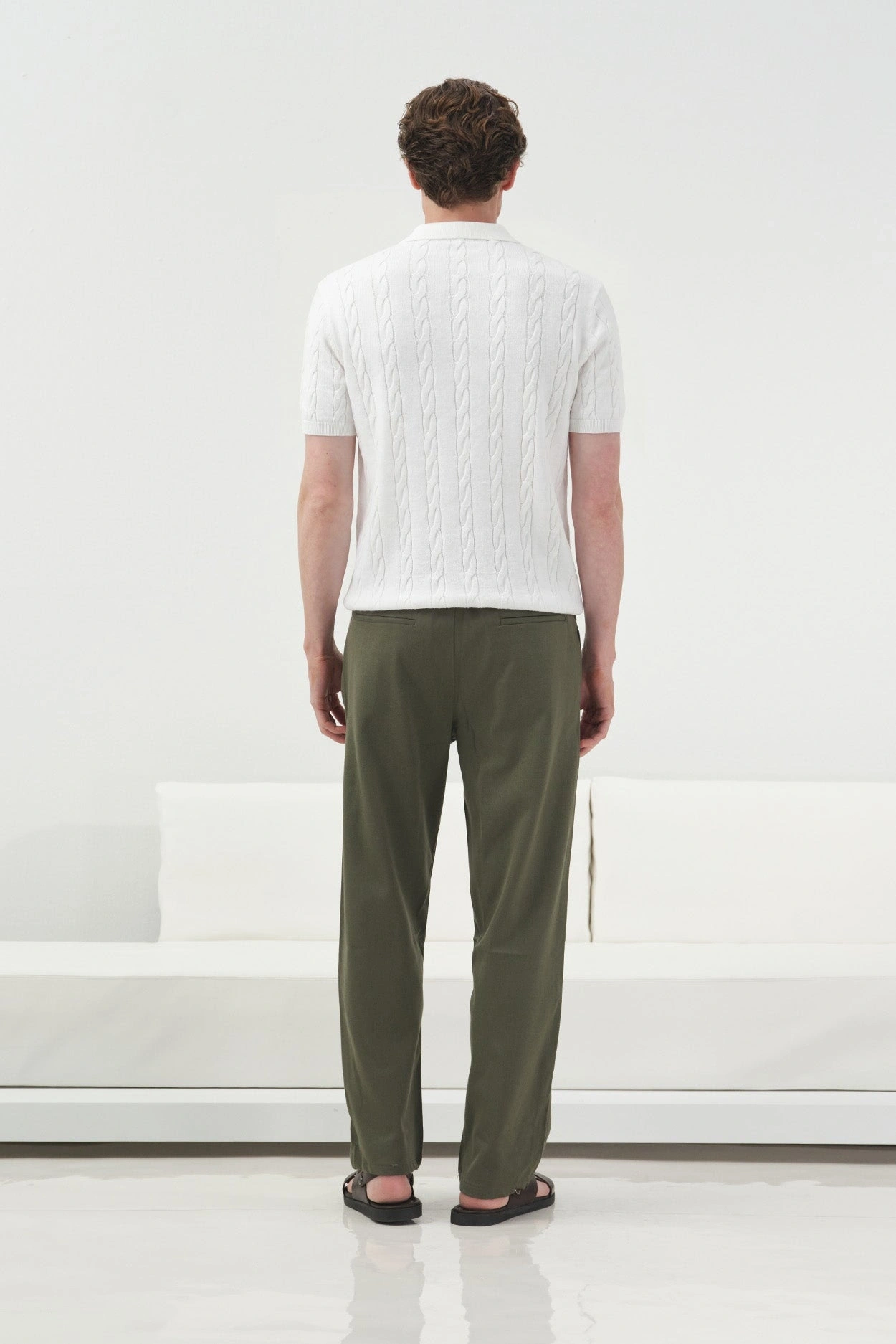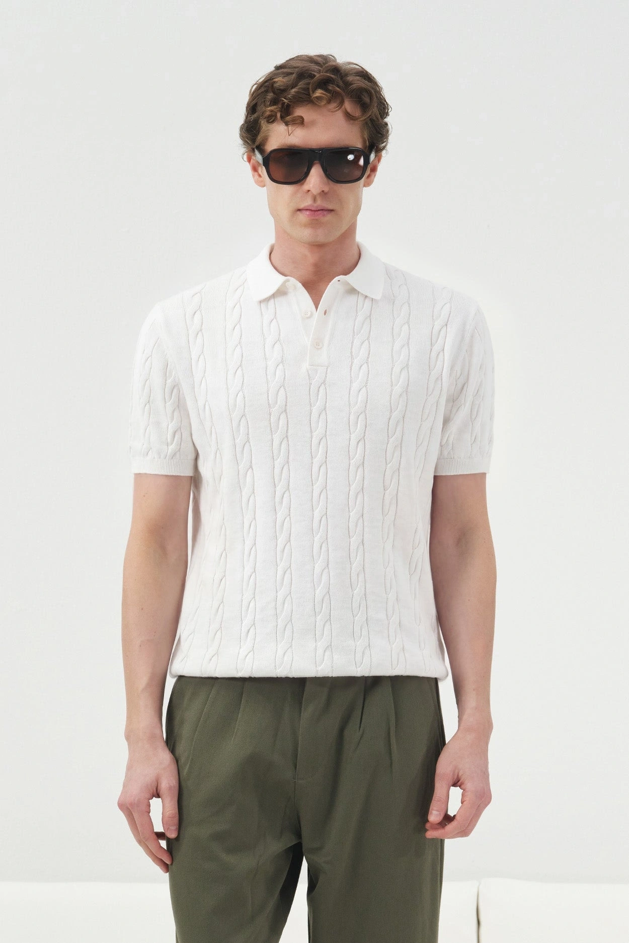 Erkek Normal Kalıp Polo Yaka Triko Kuma Thişört - Beyaz