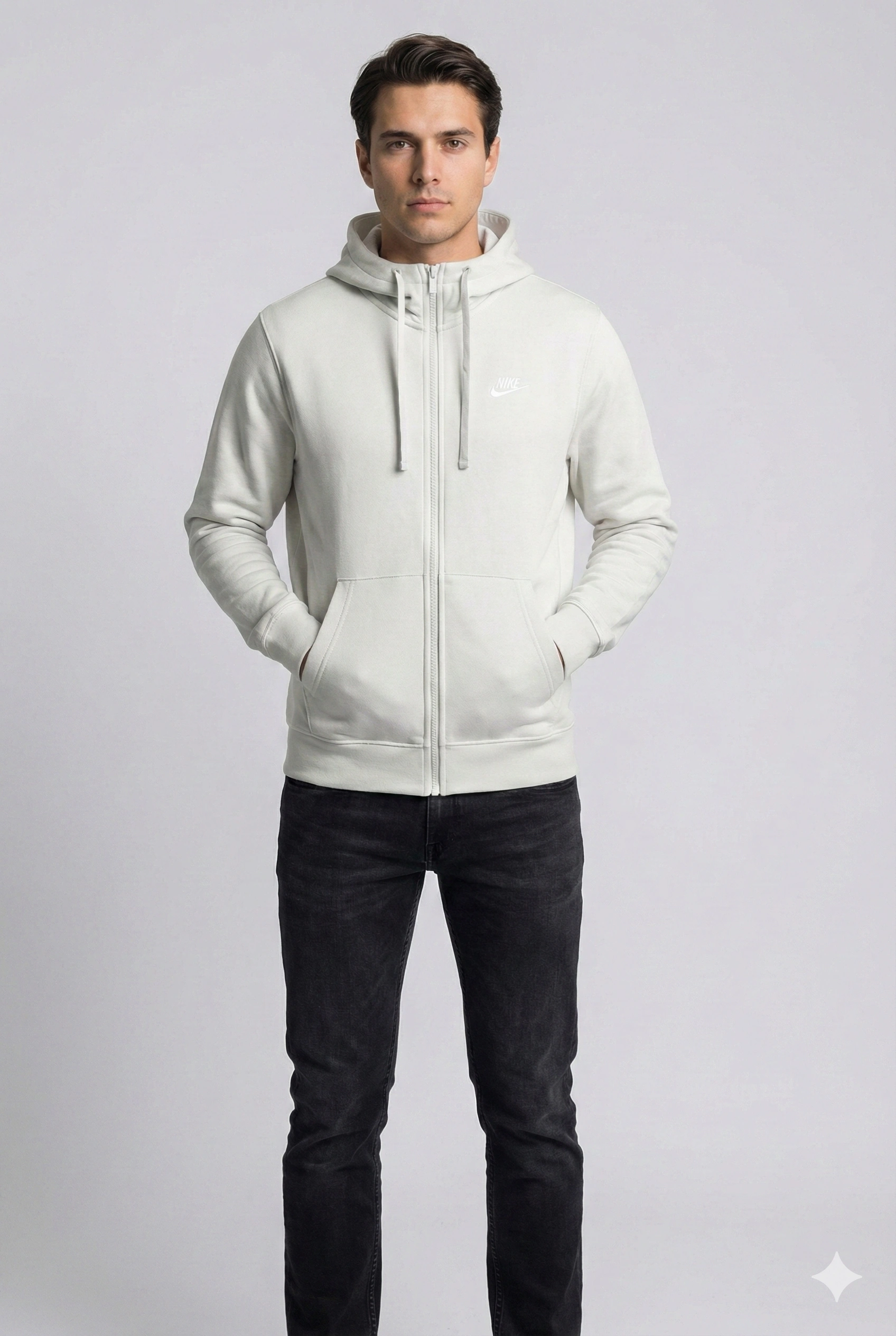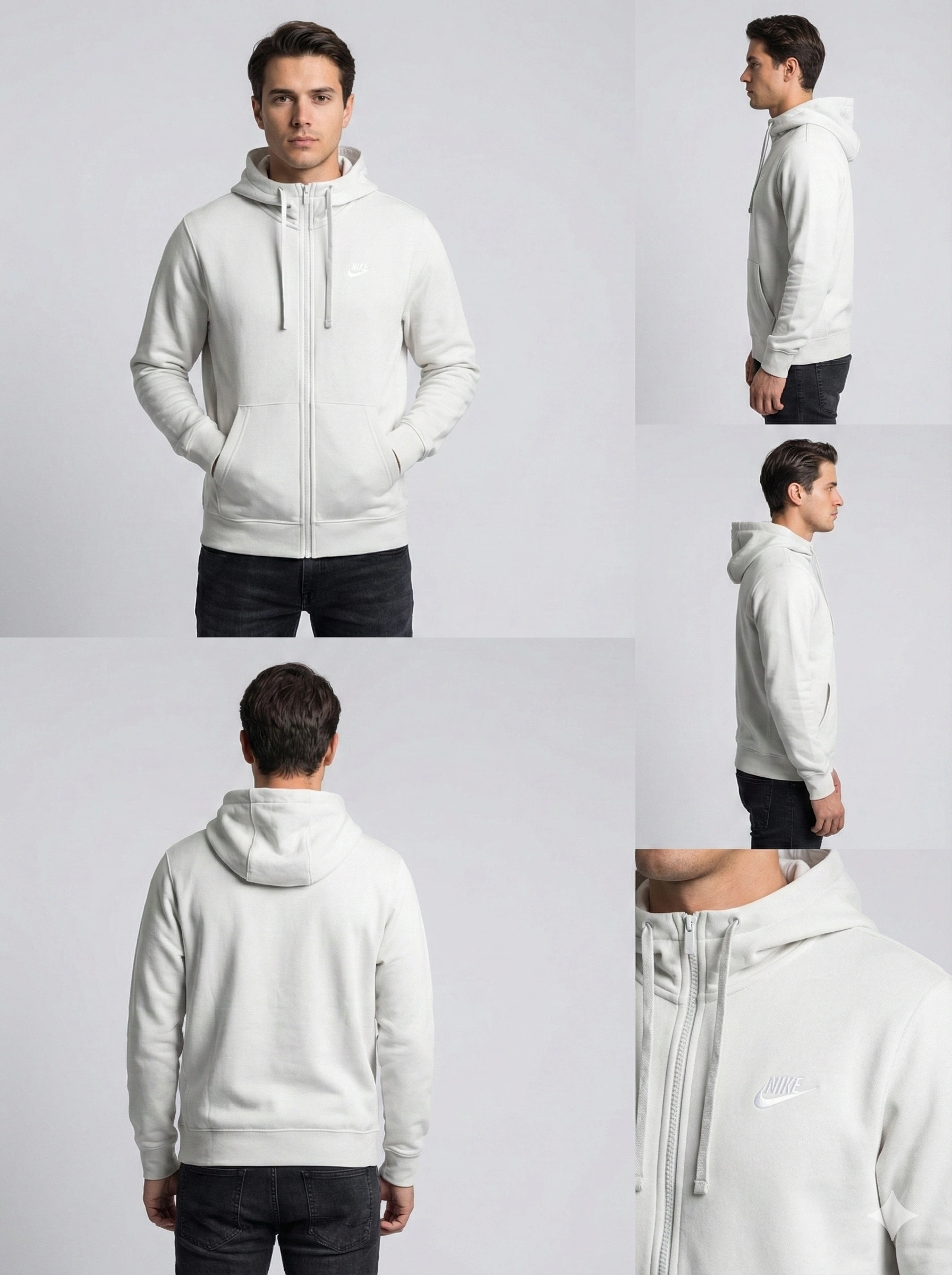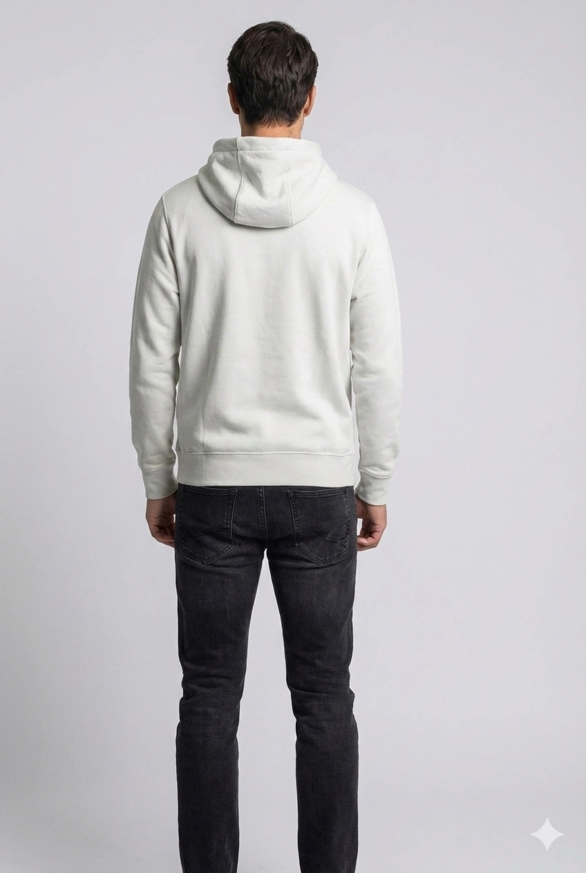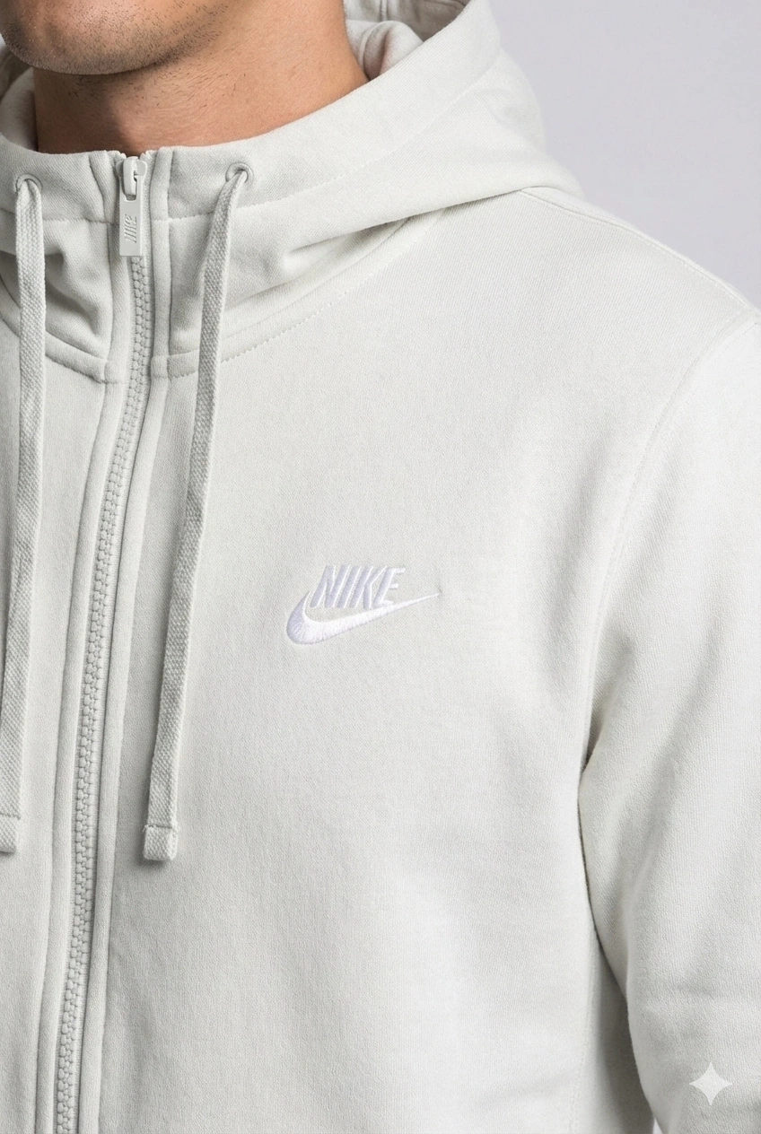 Erkek Normal Kalıp Tam Fermuarlı Kapüşonlü İki İplik Marka Sweatshirt -Gri