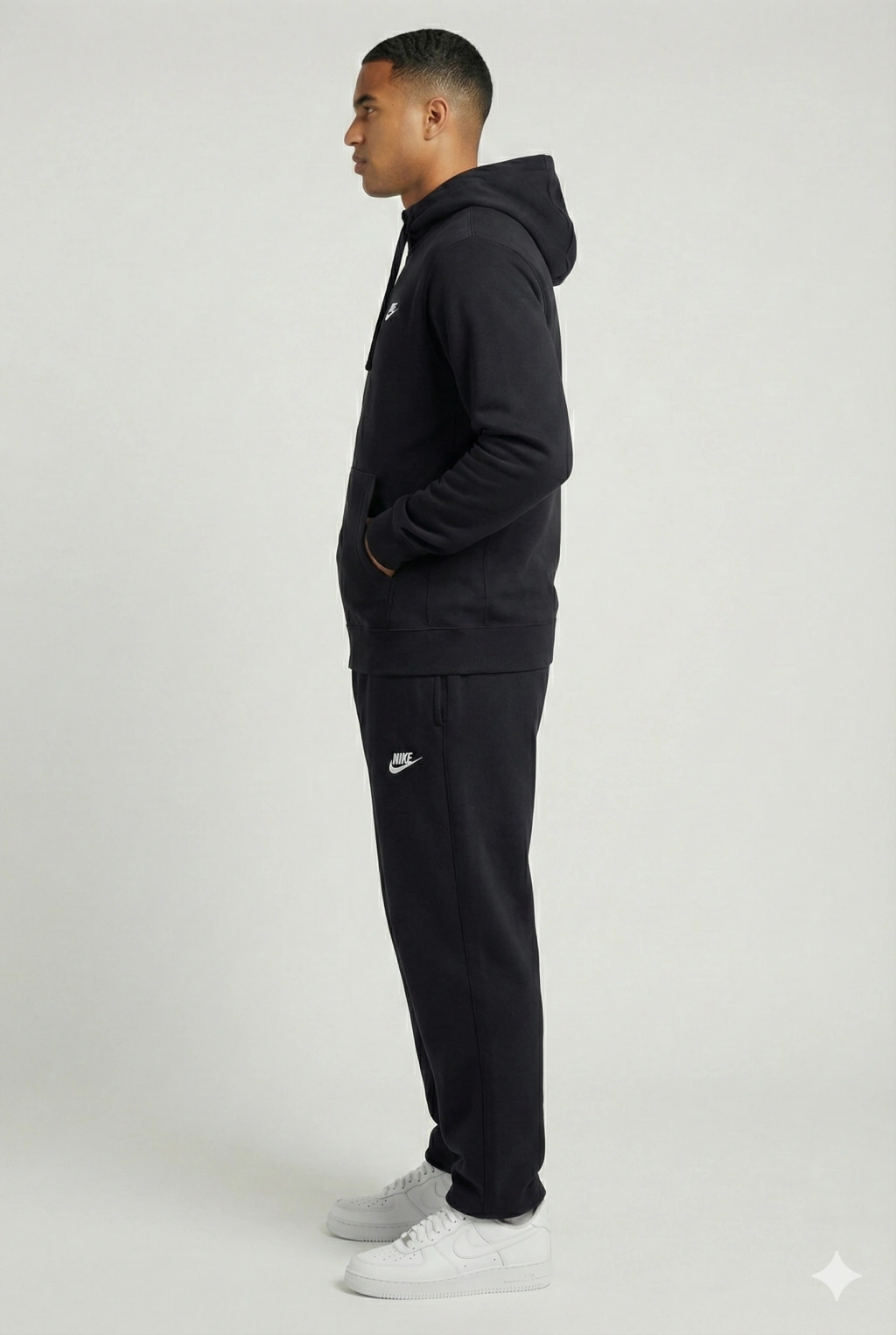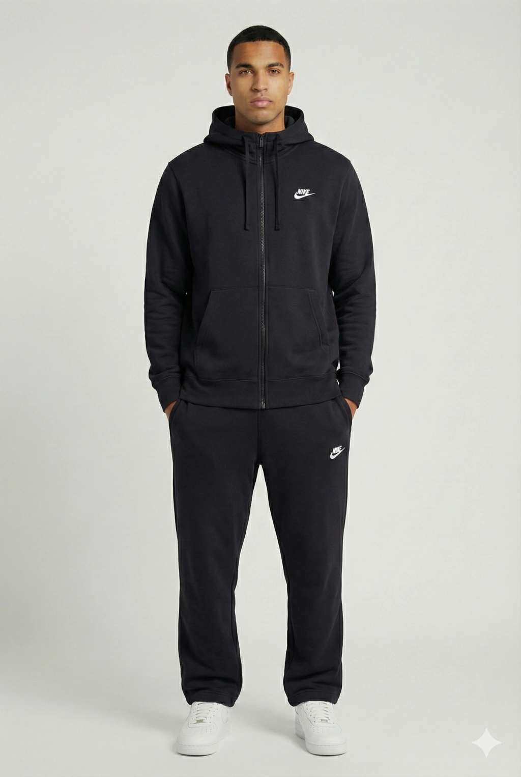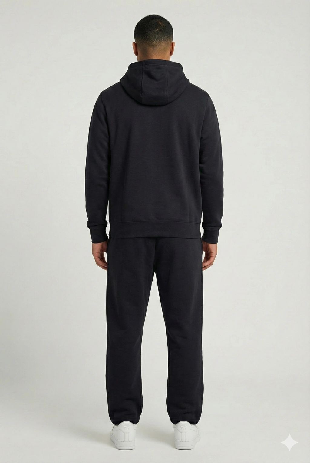 Erkek Normal Kalıp Tam Fermuarlı Kapüşonlü İki İplik Marka Sweatshirt -Siyah