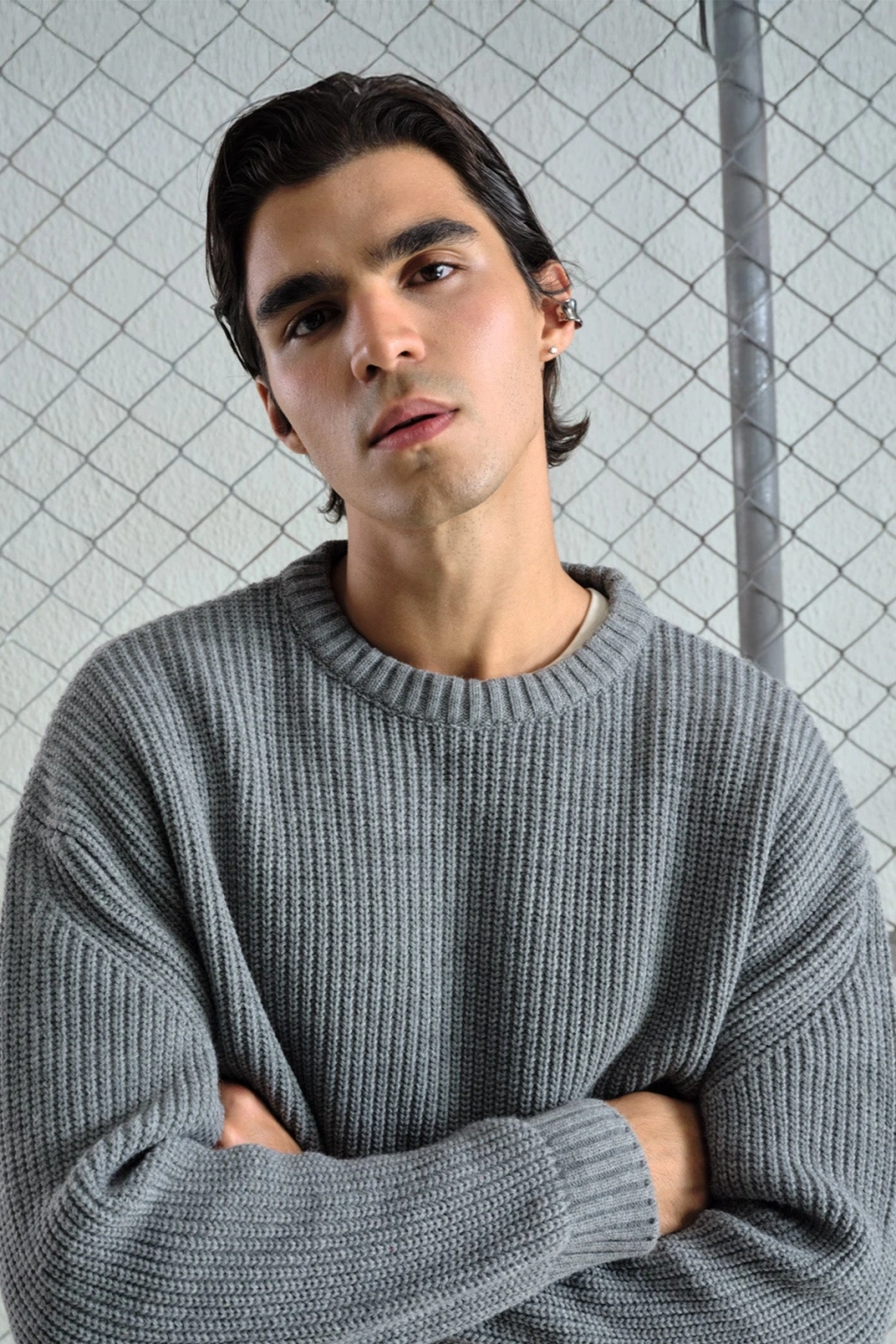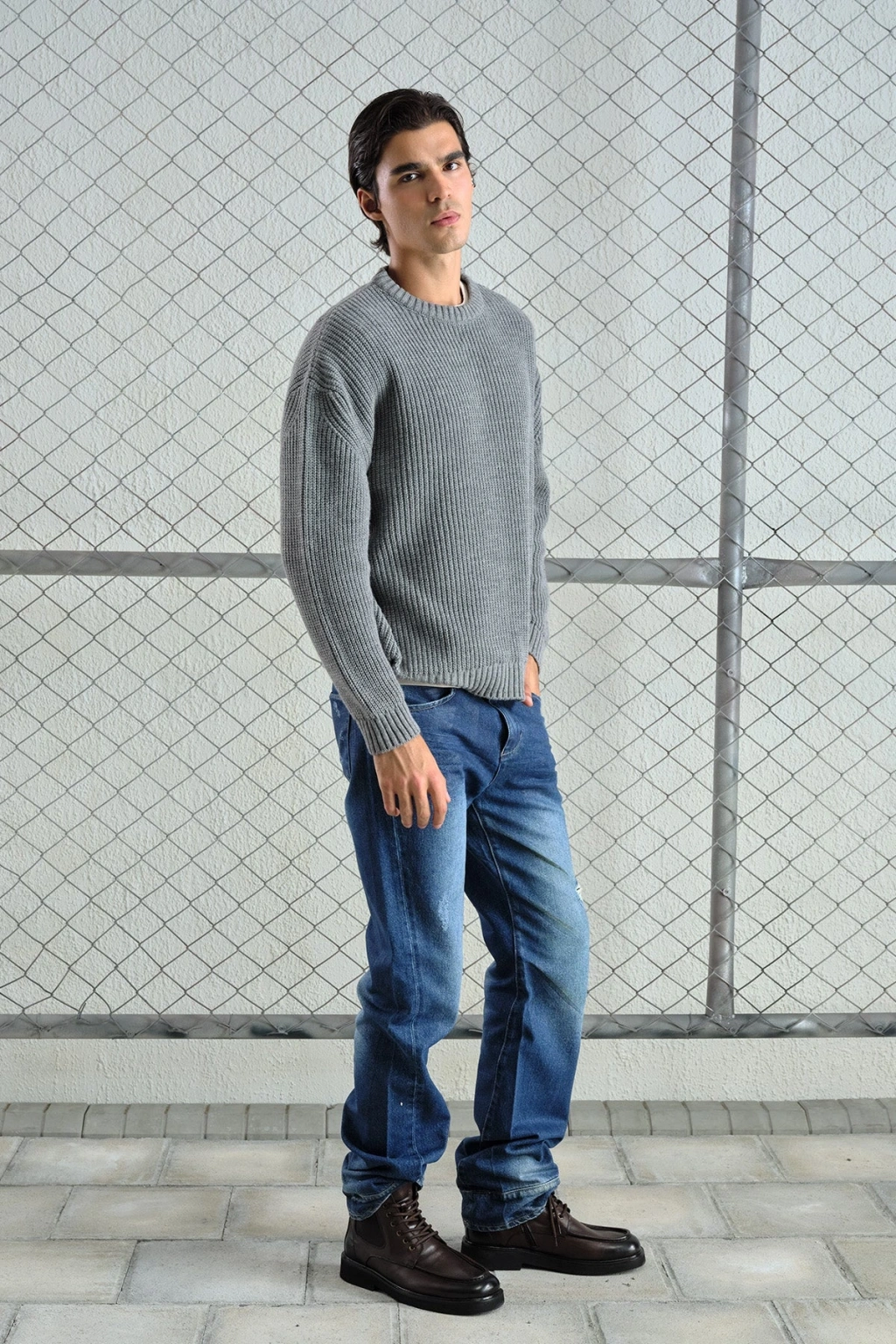 Erkek Normal Kesim Bisiklet Yaka Triko -Gri
