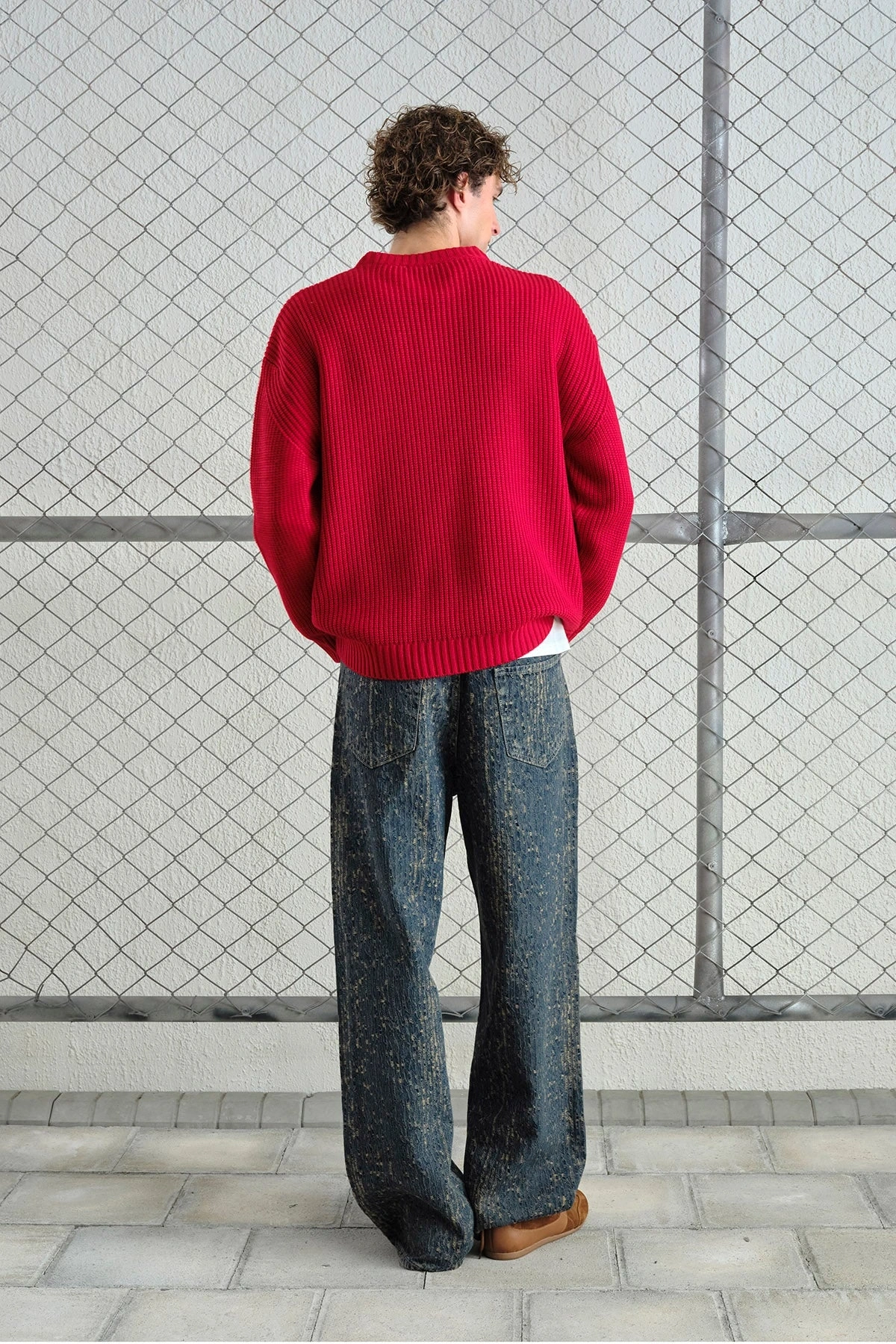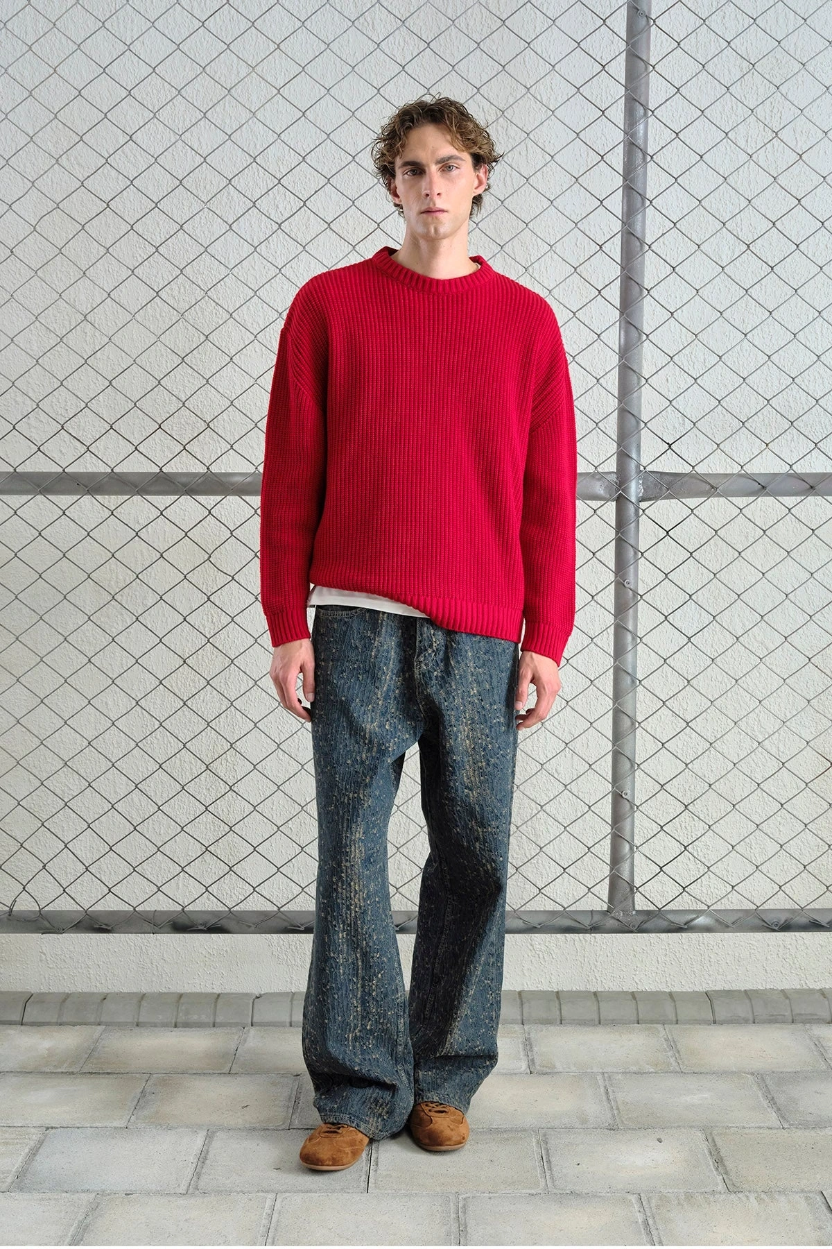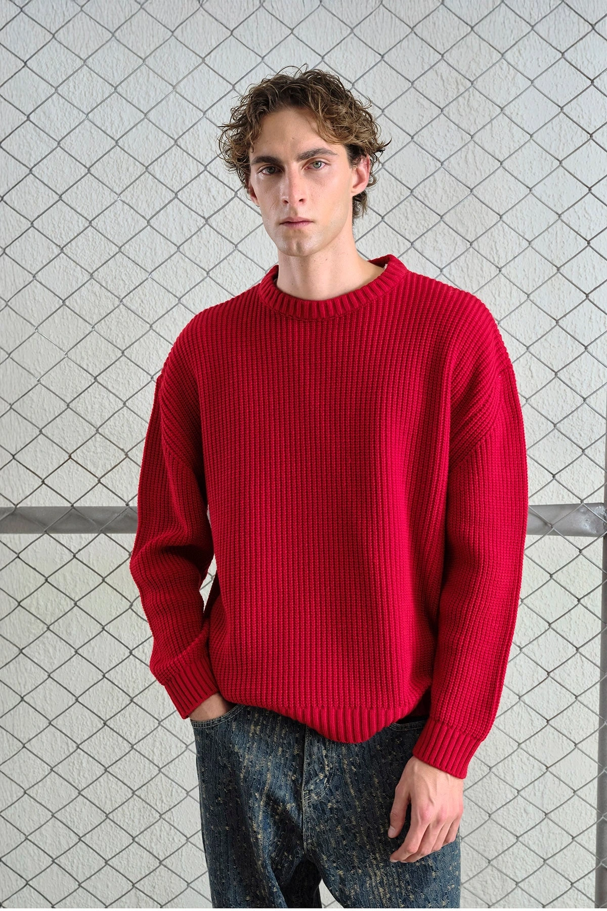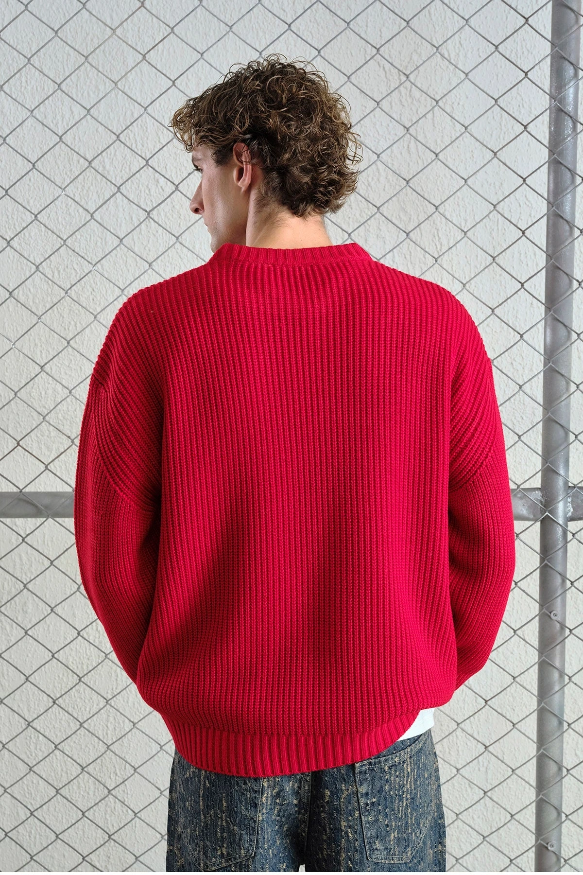 Erkek Normal Kesim Bisiklet Yaka Triko -Kırmızı