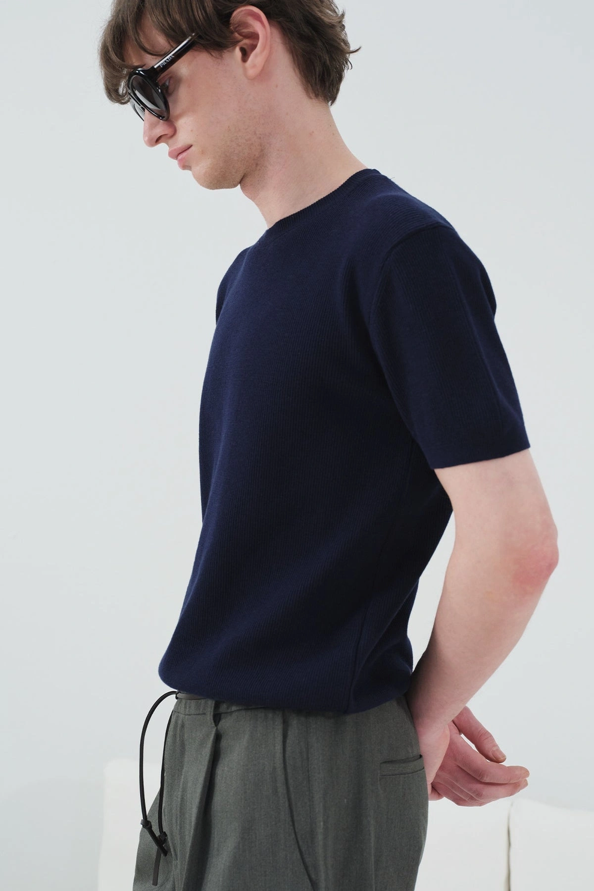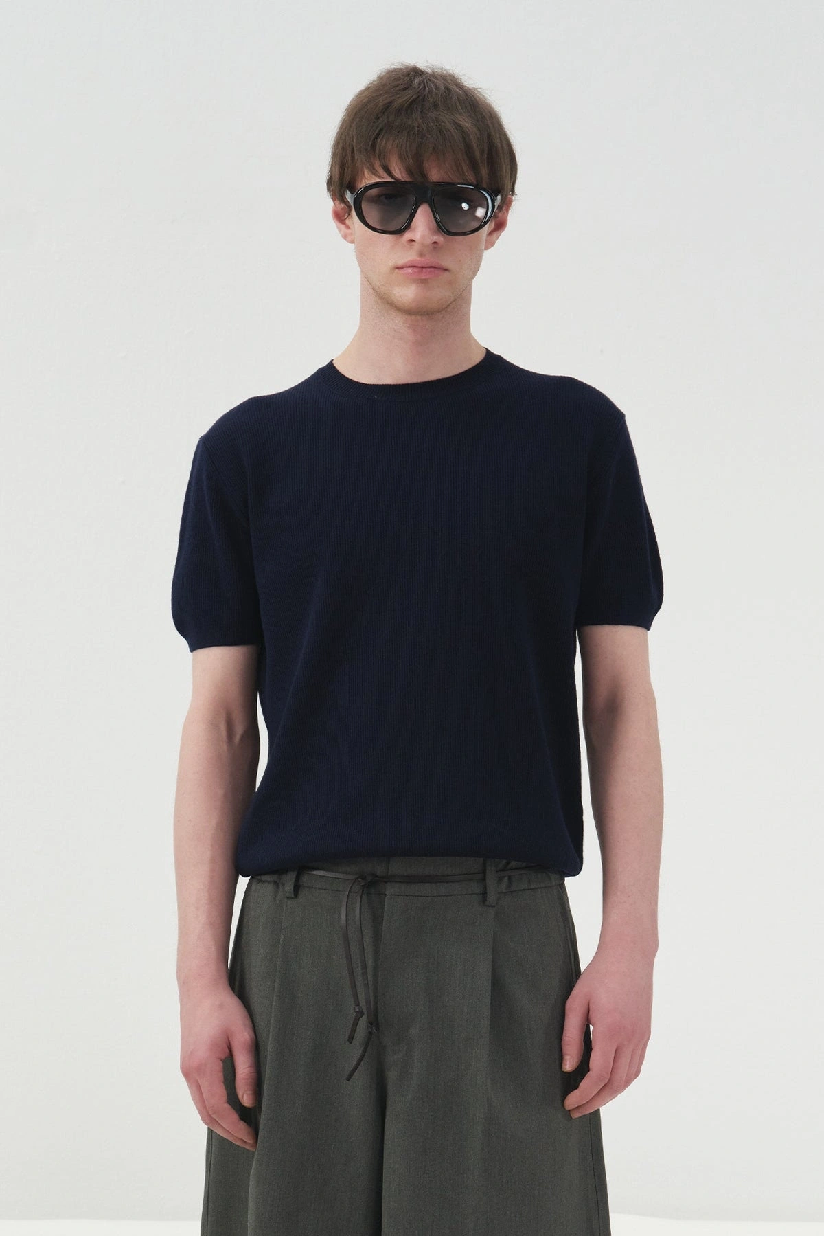 Erkek Normal Kesim Bisiklet Yaka Triko Thişört -Lacivert