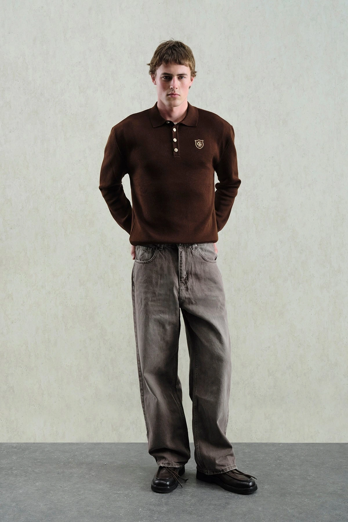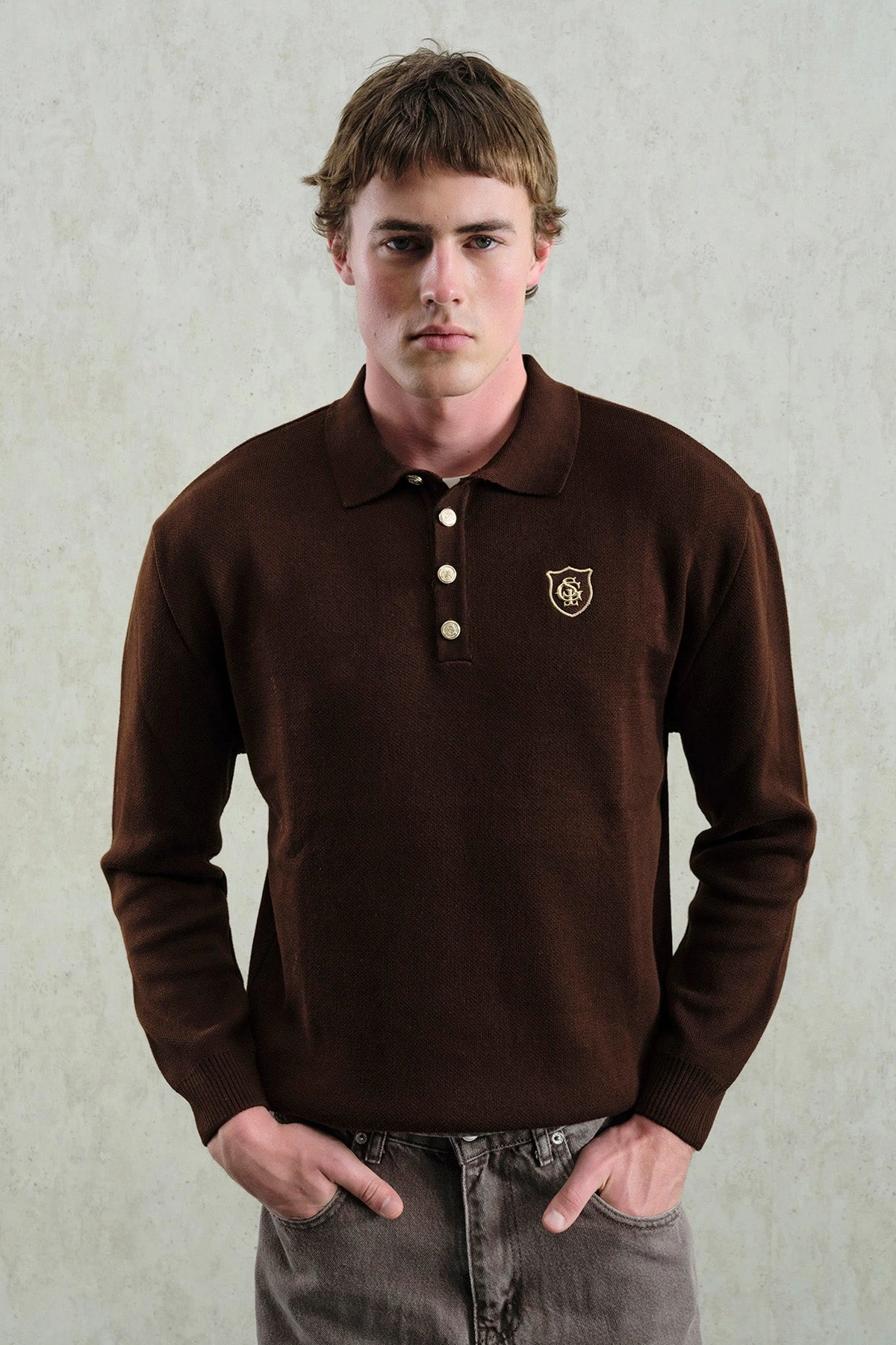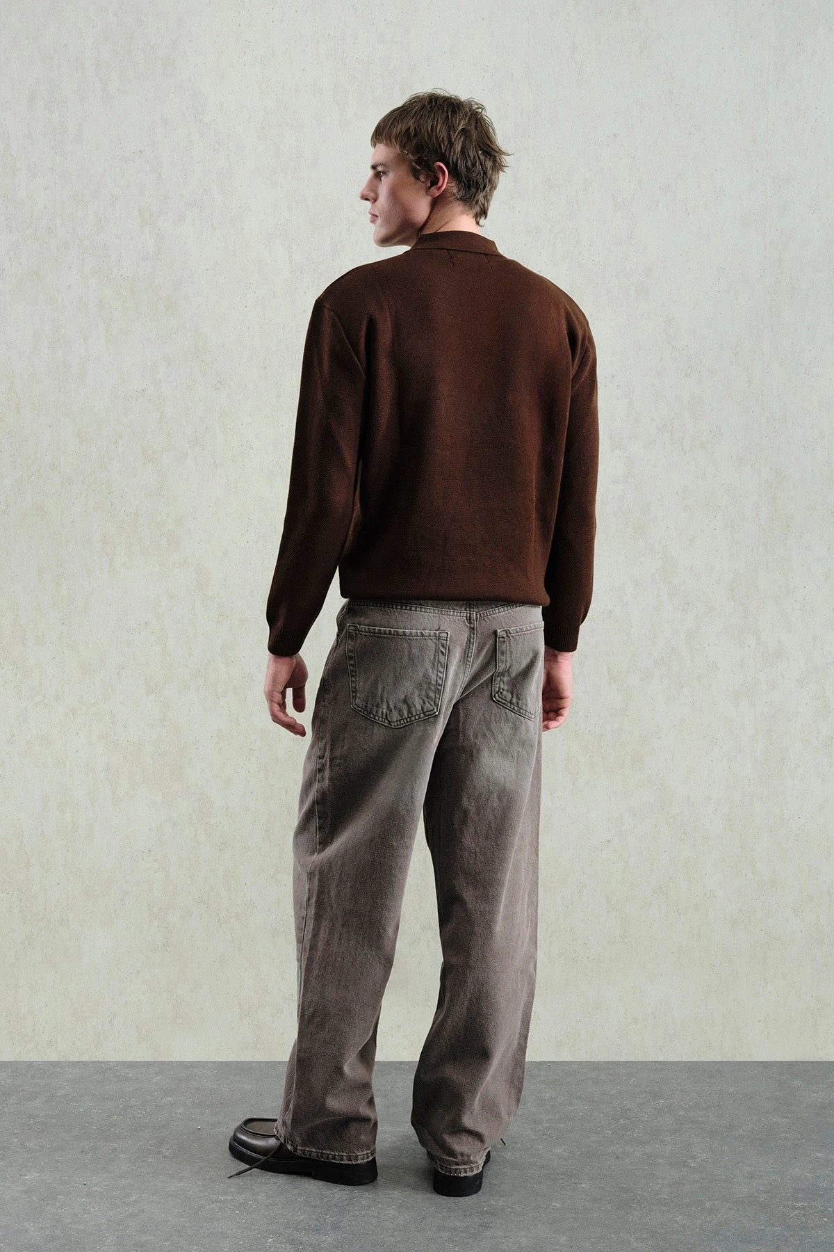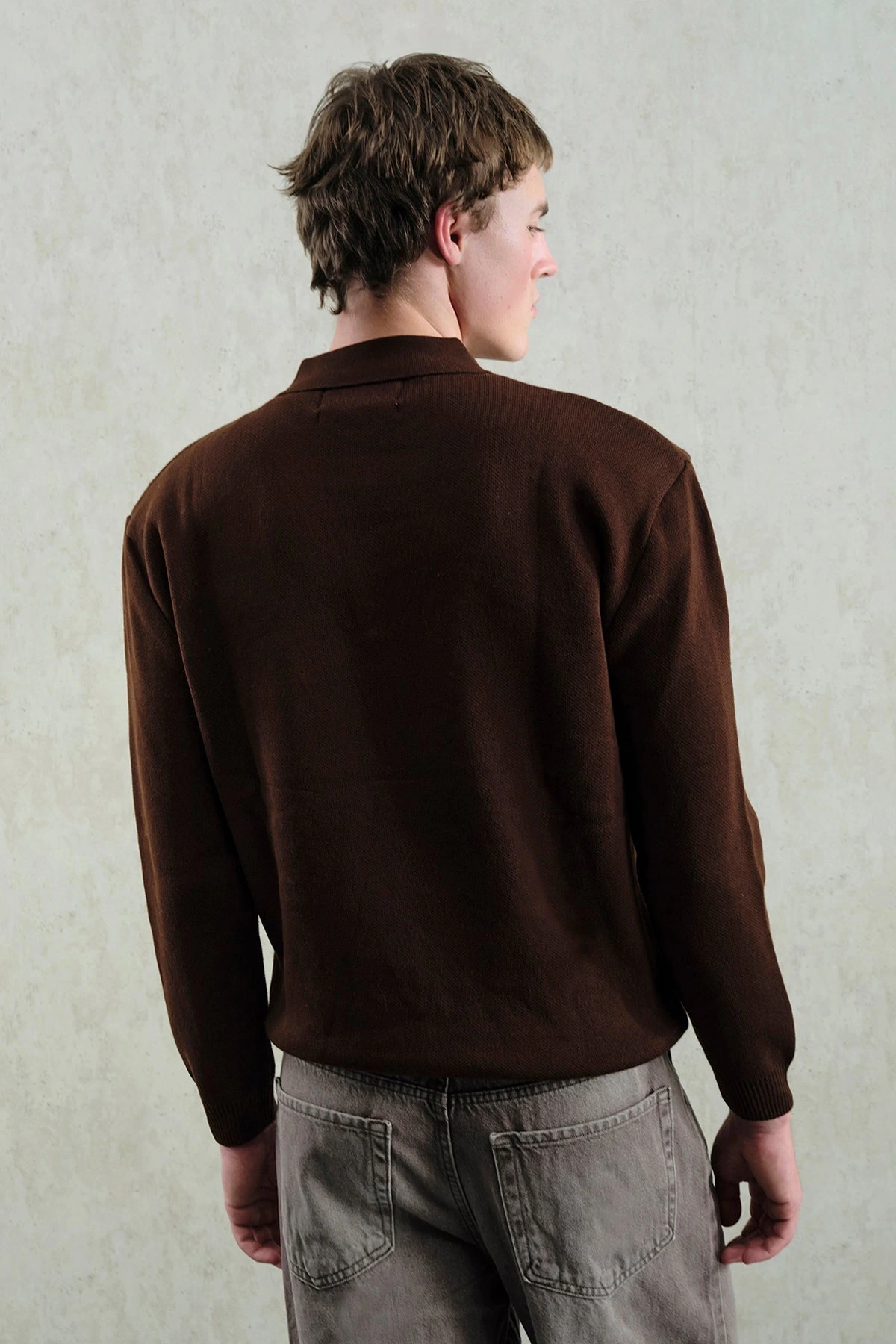 Erkek Normal Kesim Polo Yaka Triko -Kahverengi