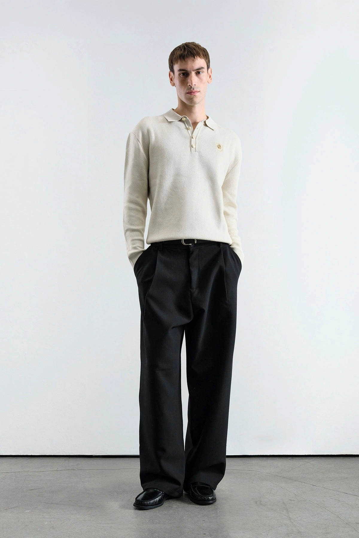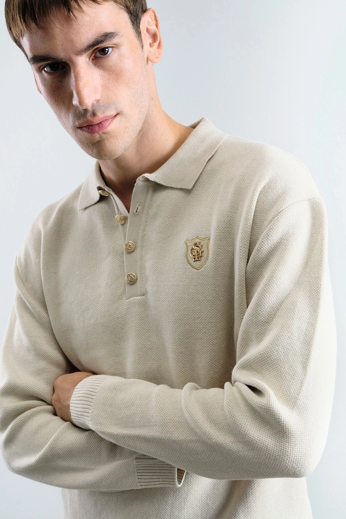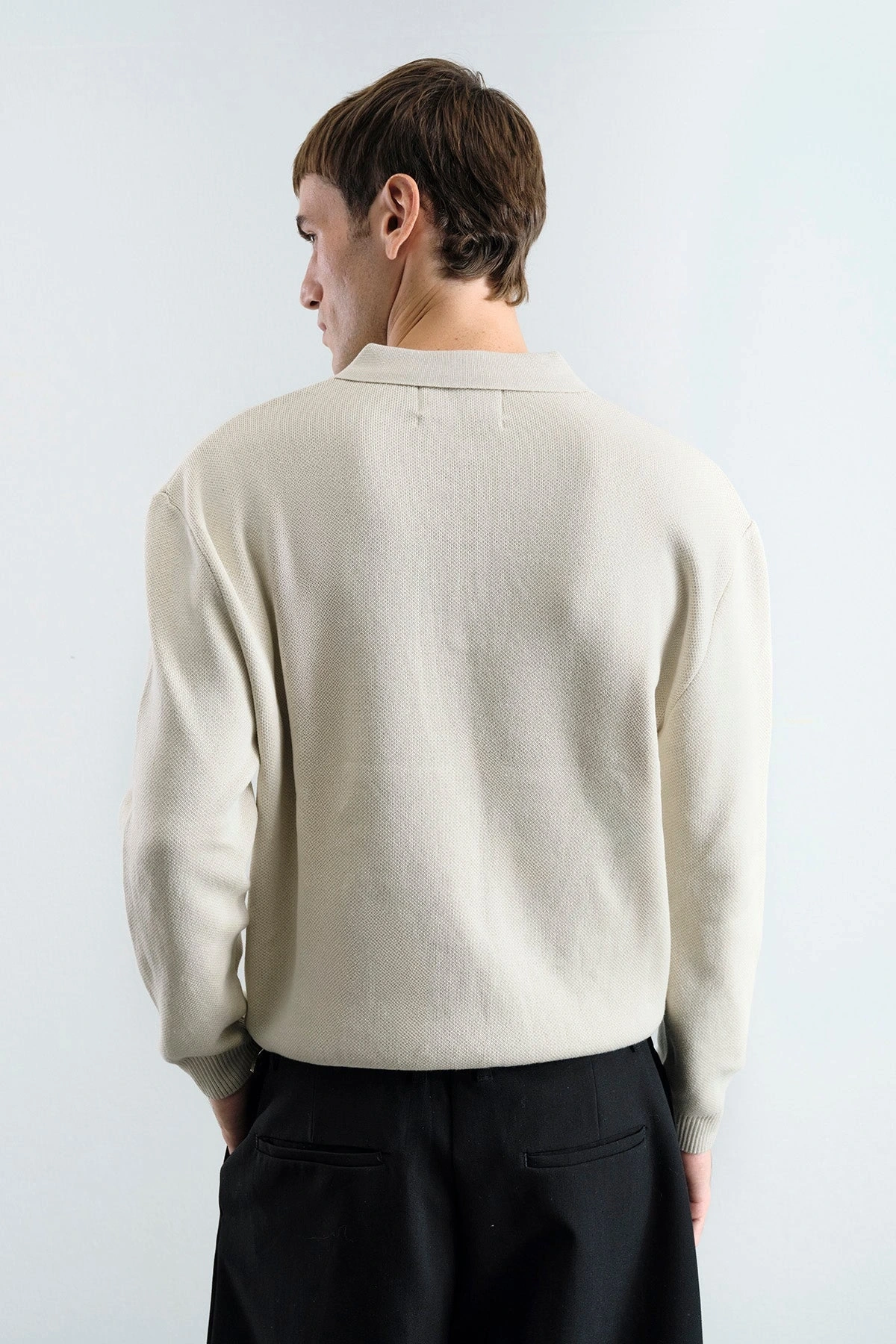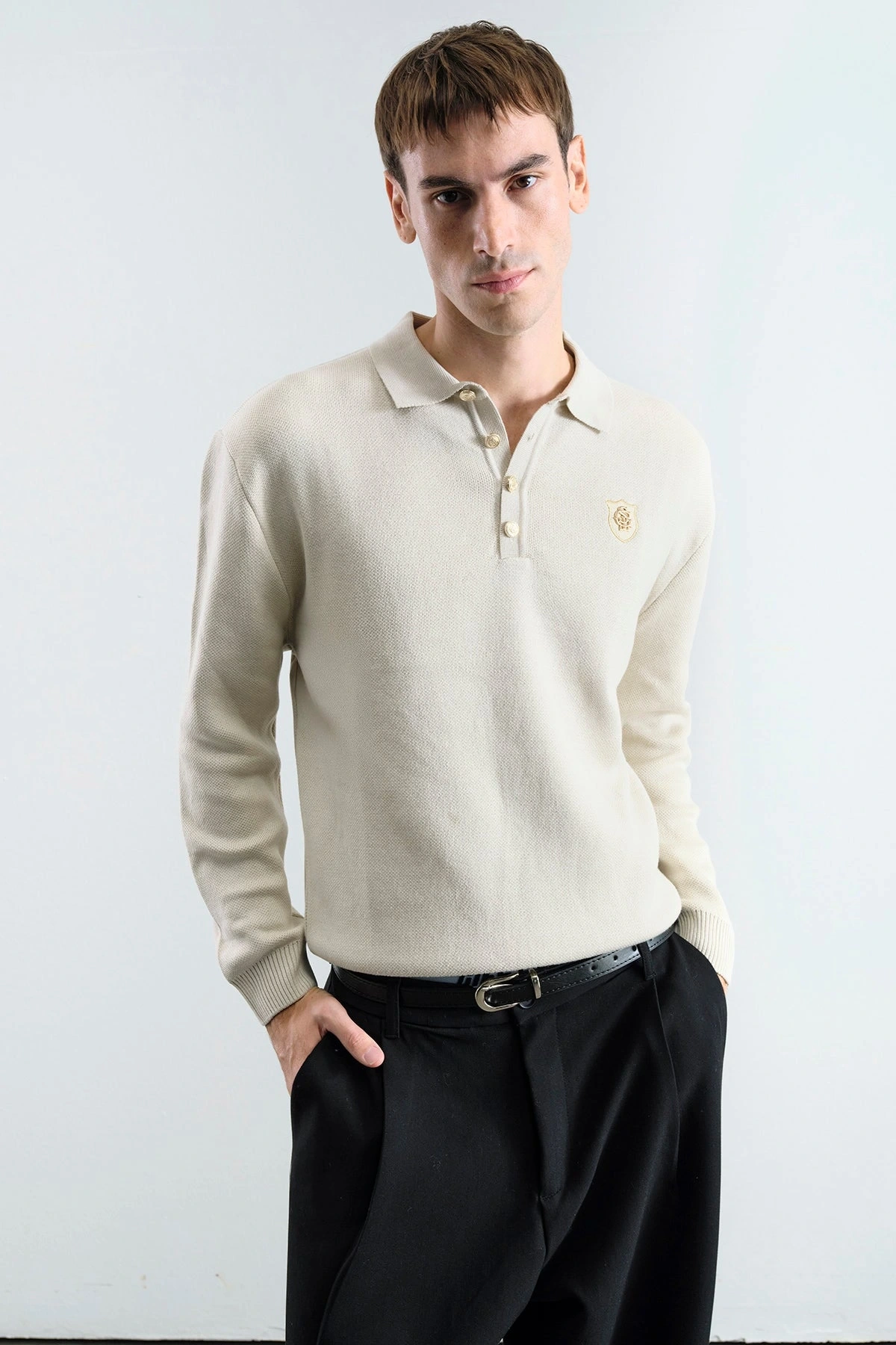 Erkek Normal Kesim Polo Yaka Triko -Krem