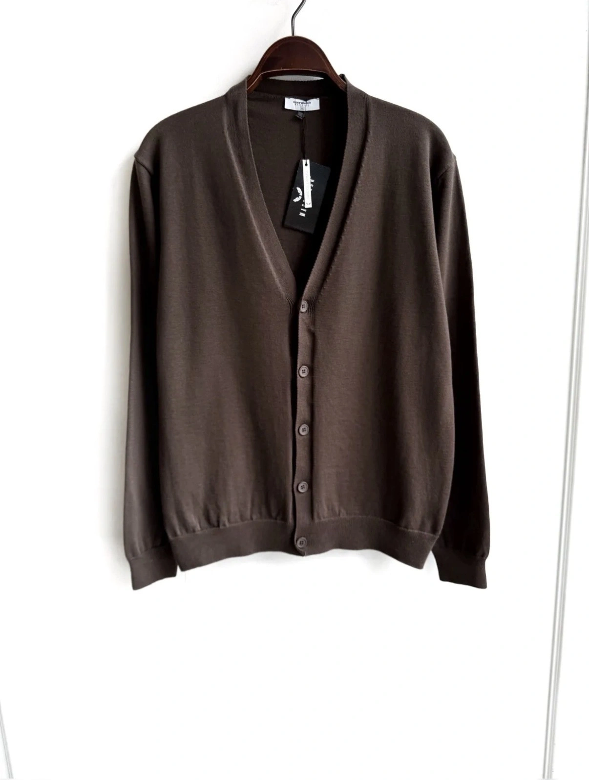 Erkek Normal Kesim Uzun Kollu Düğmeli Hırka Triko -Kahverengi