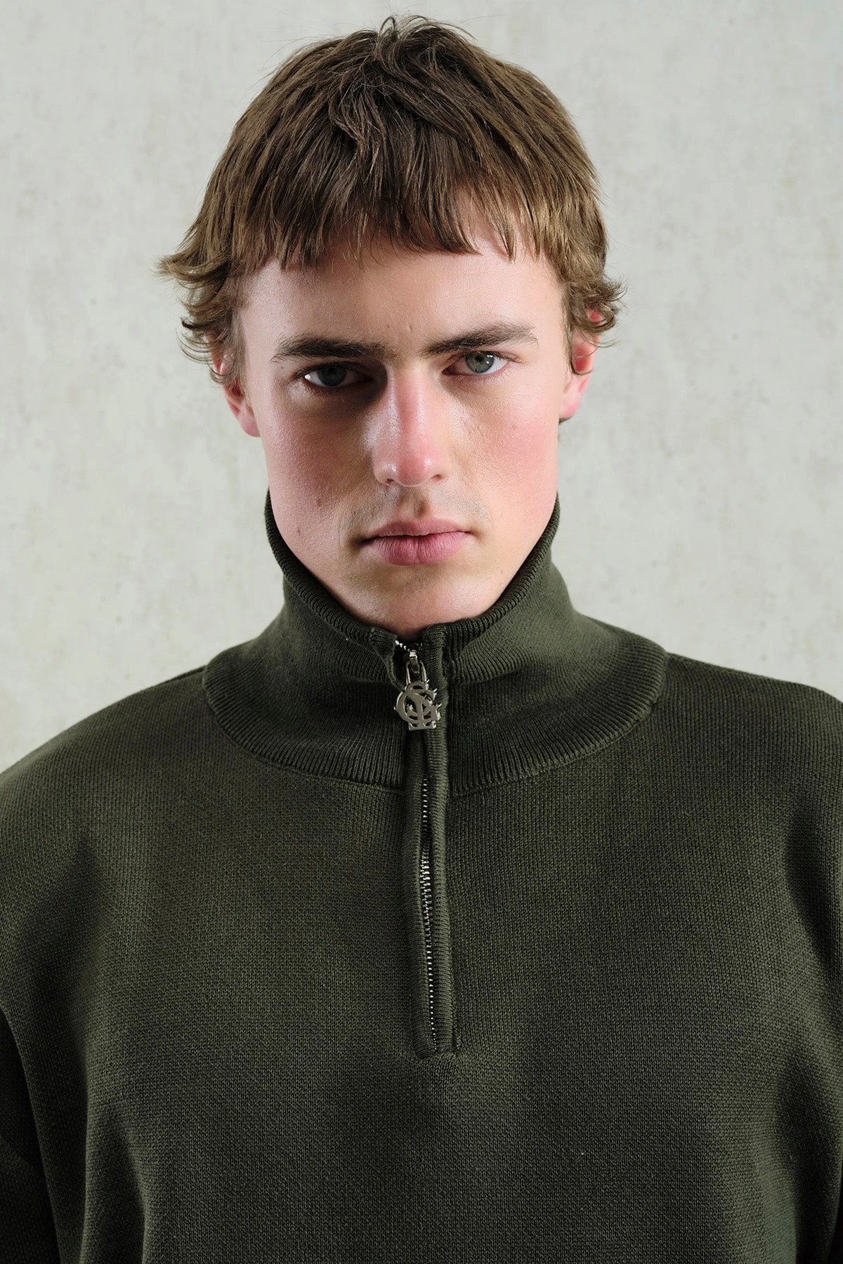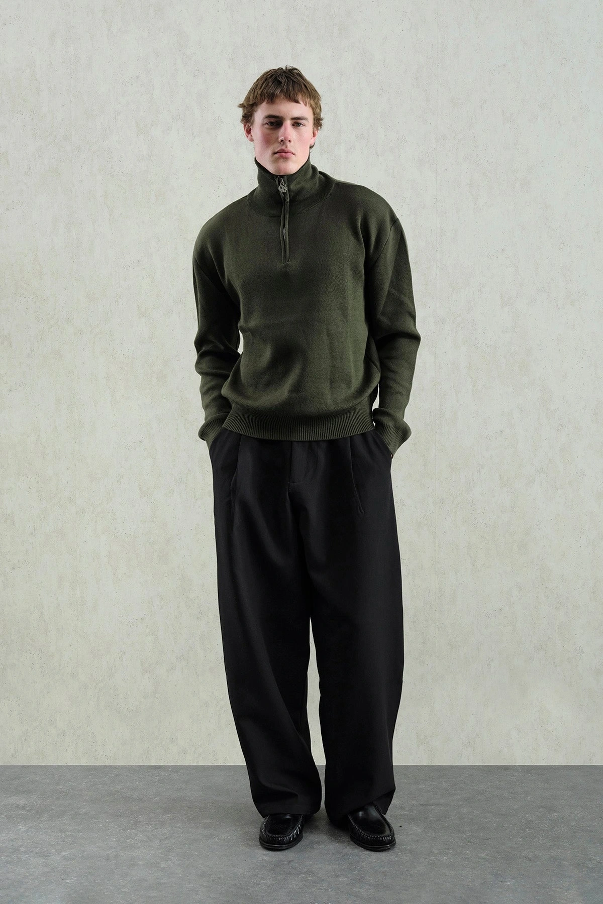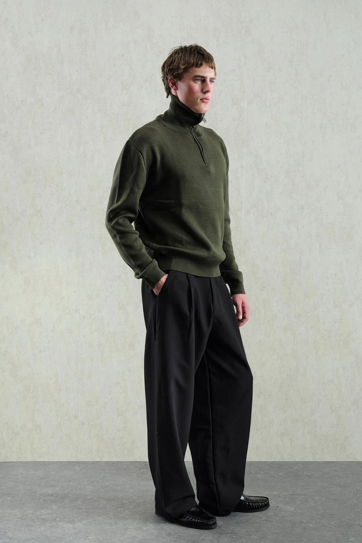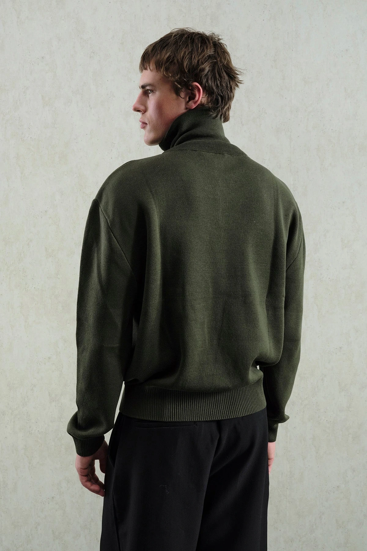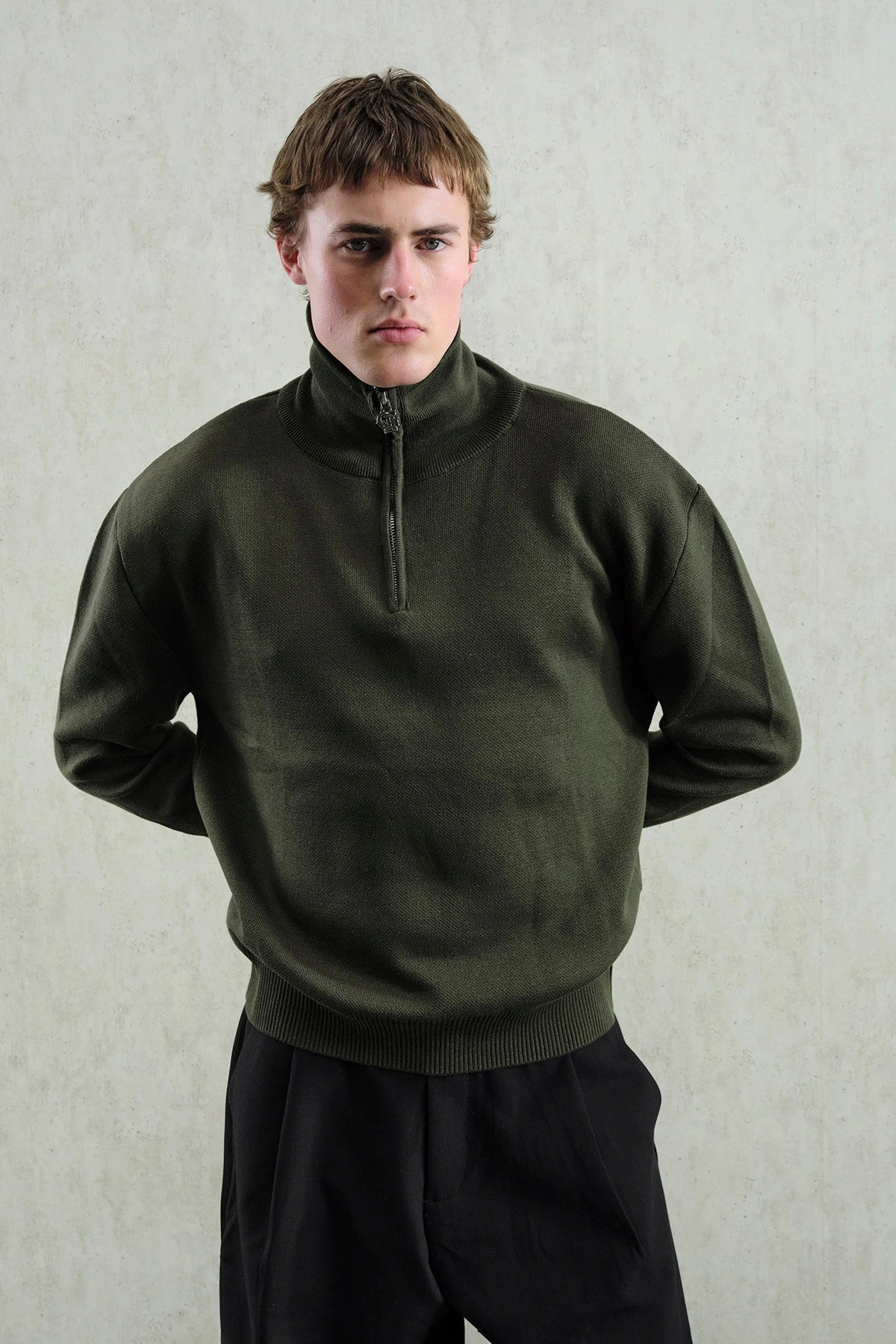 Erkek Normal Kesim Yakası Fermuarlı Polo Yaka Triko -Yeşil