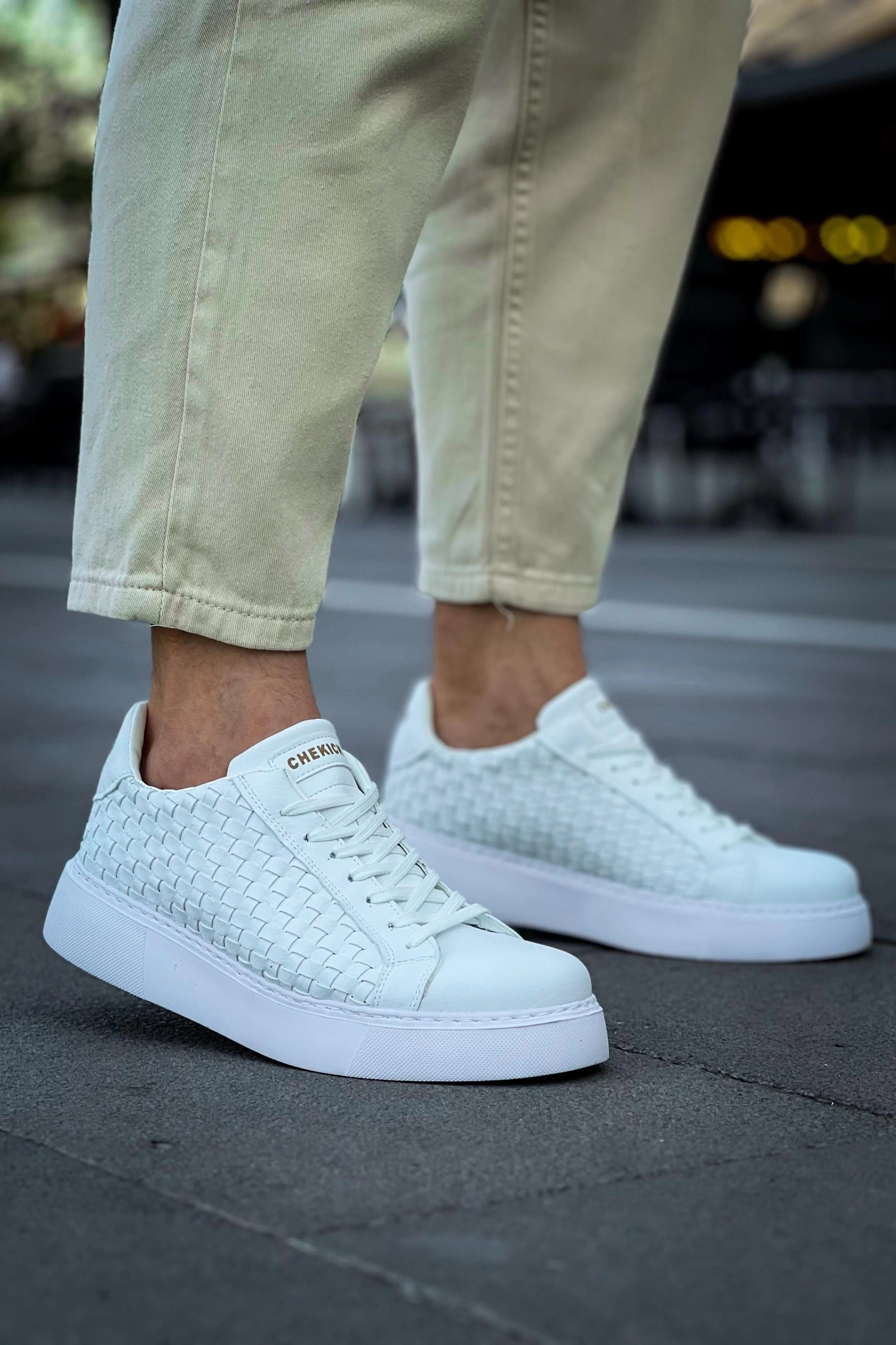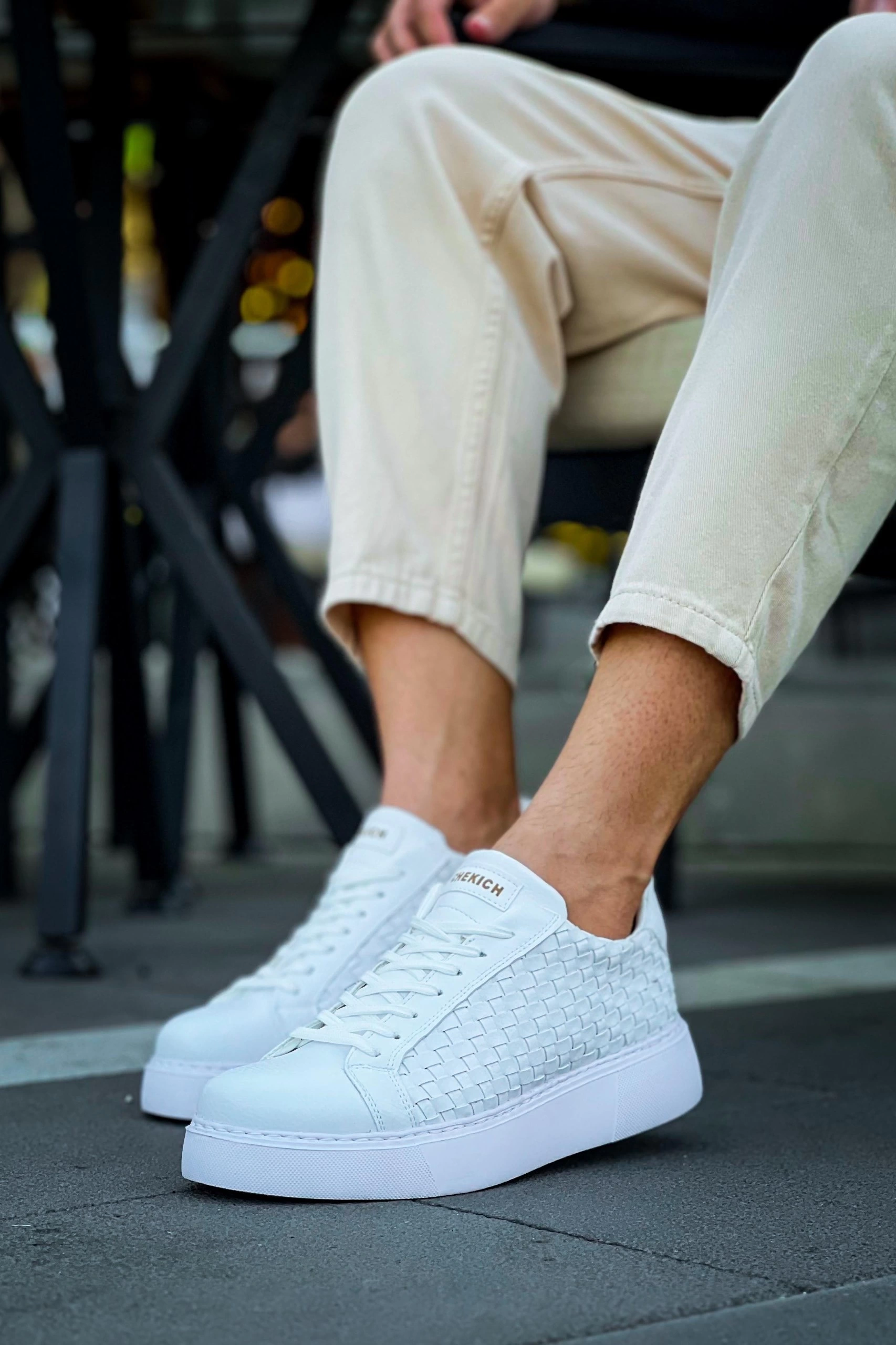 Erkek Örme Desen Günlük Spor Rahat Ayakkabı-Beyaz-Beyaz
