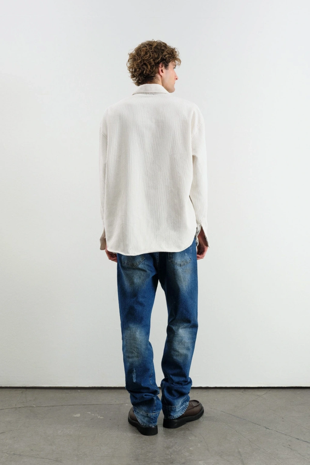 Erkek Owersıze Fitilli Kadife Gömlek -Beyaz