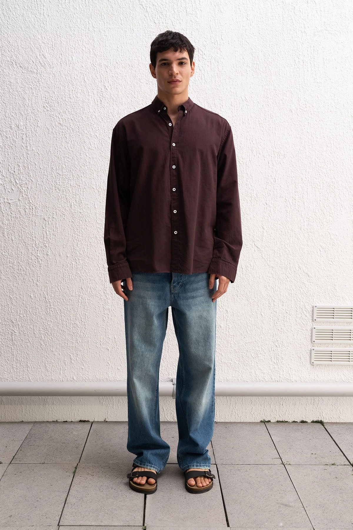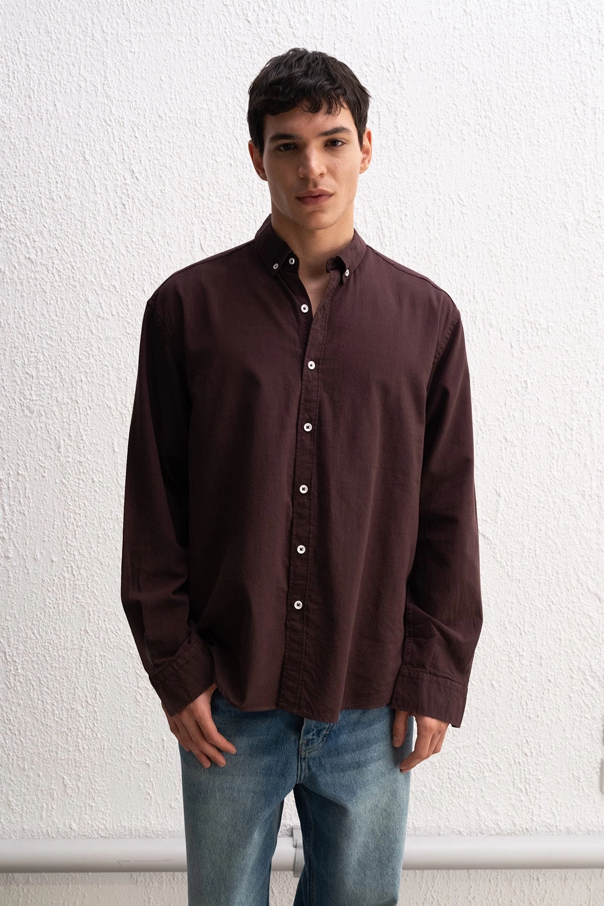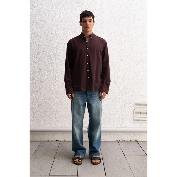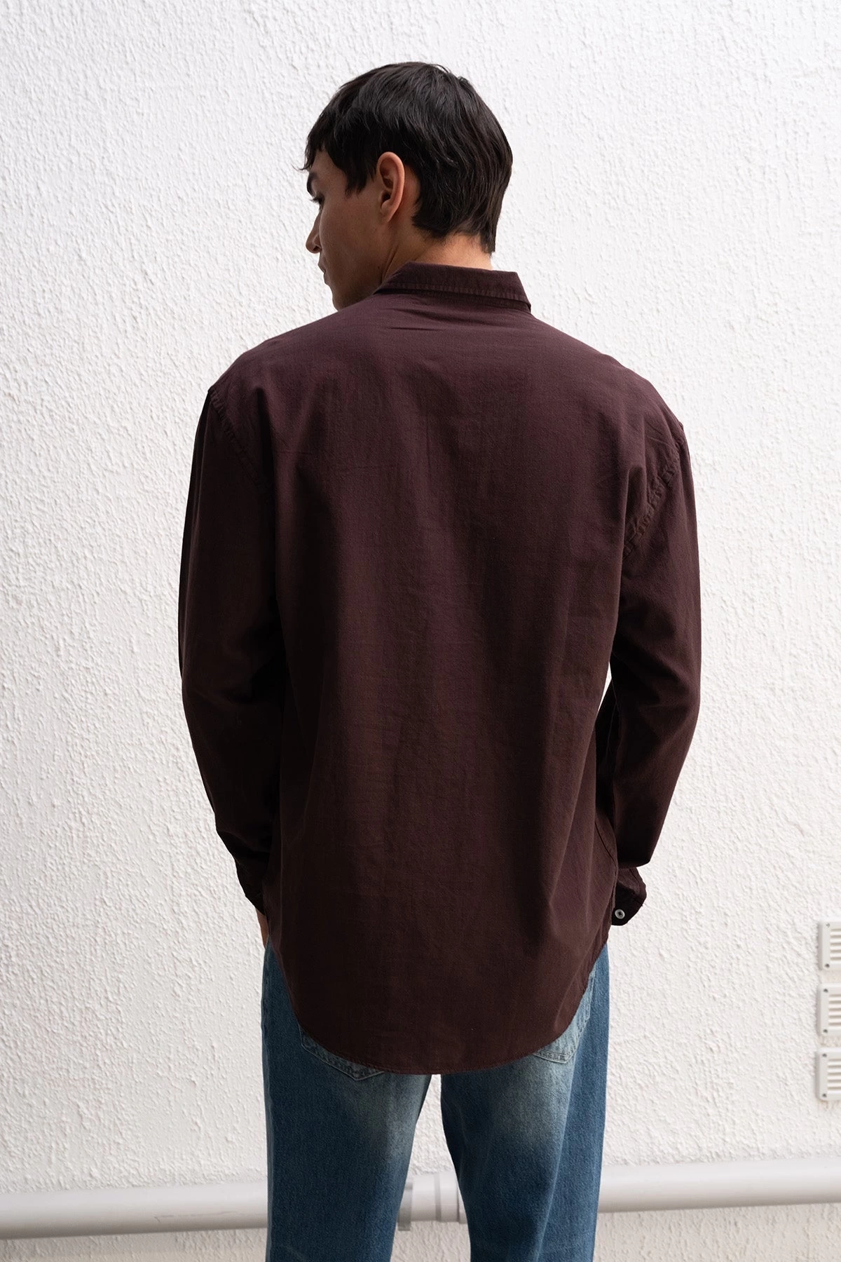 Erkek Owersize Fresh Keten Gömlek- Kahverengi