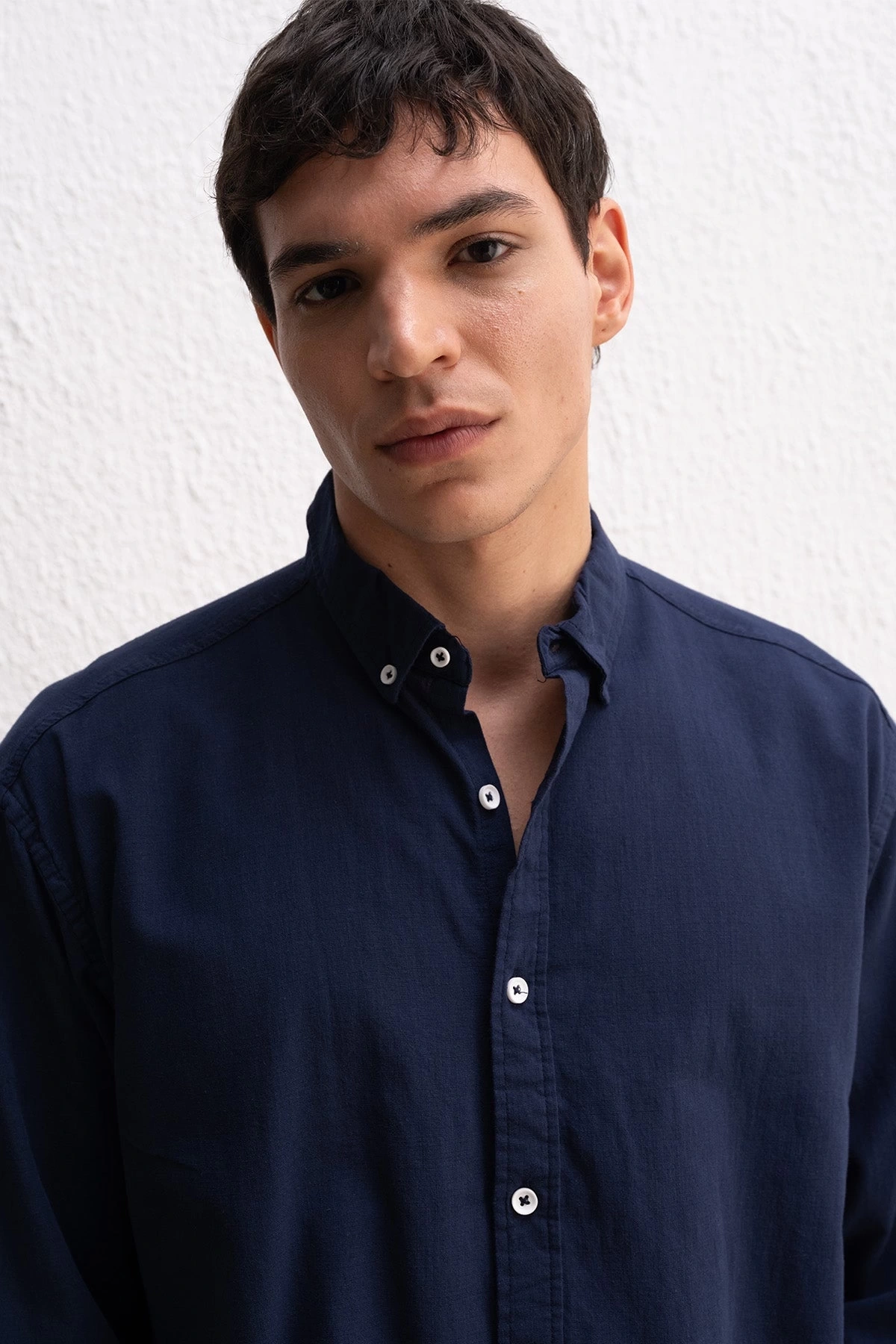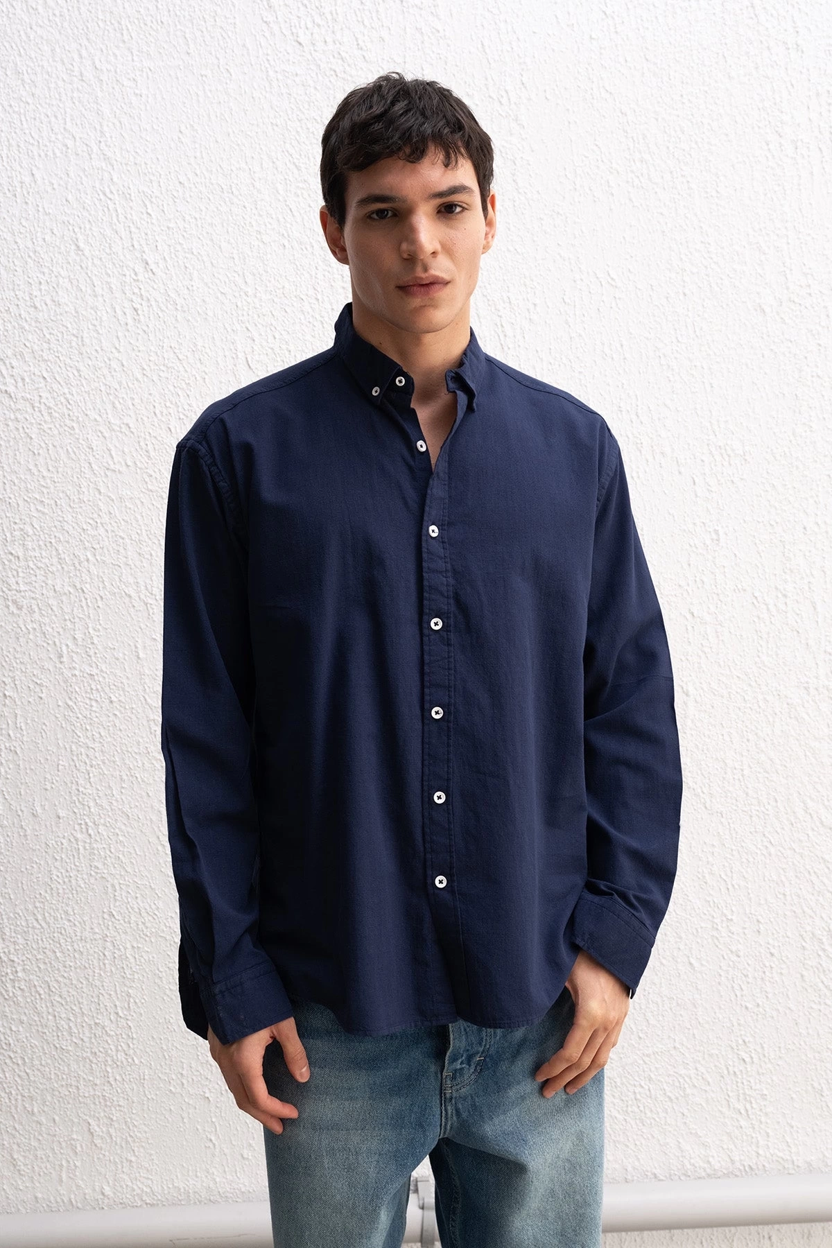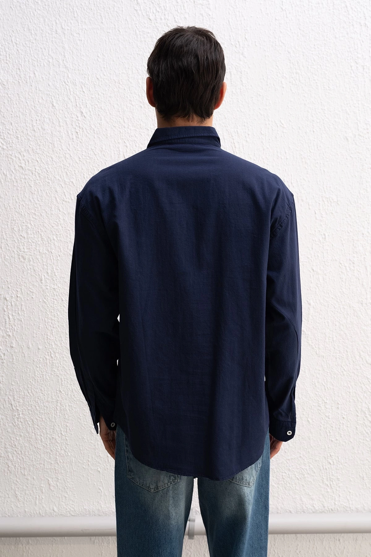 Erkek Owersize Fresh Keten Gömlek- Lacivert