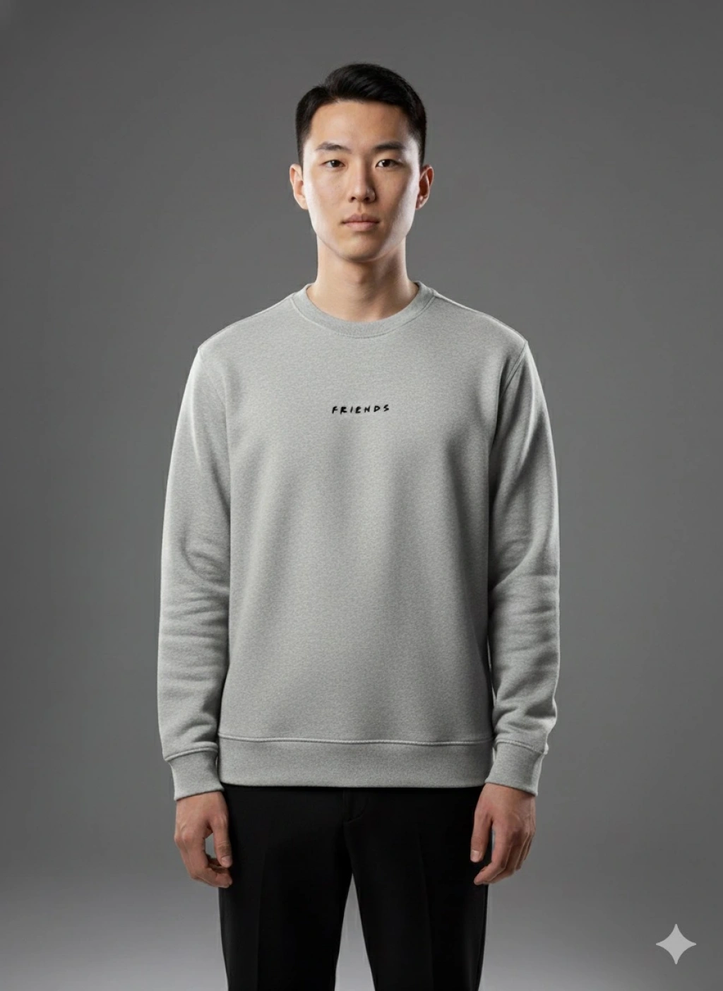 Erkek Owersize Frıends Yazılı Sweat- Gri