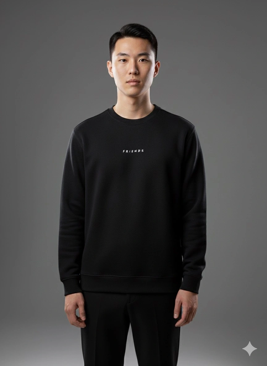Erkek Owersize Frıends Yazılı Sweat- Siyah