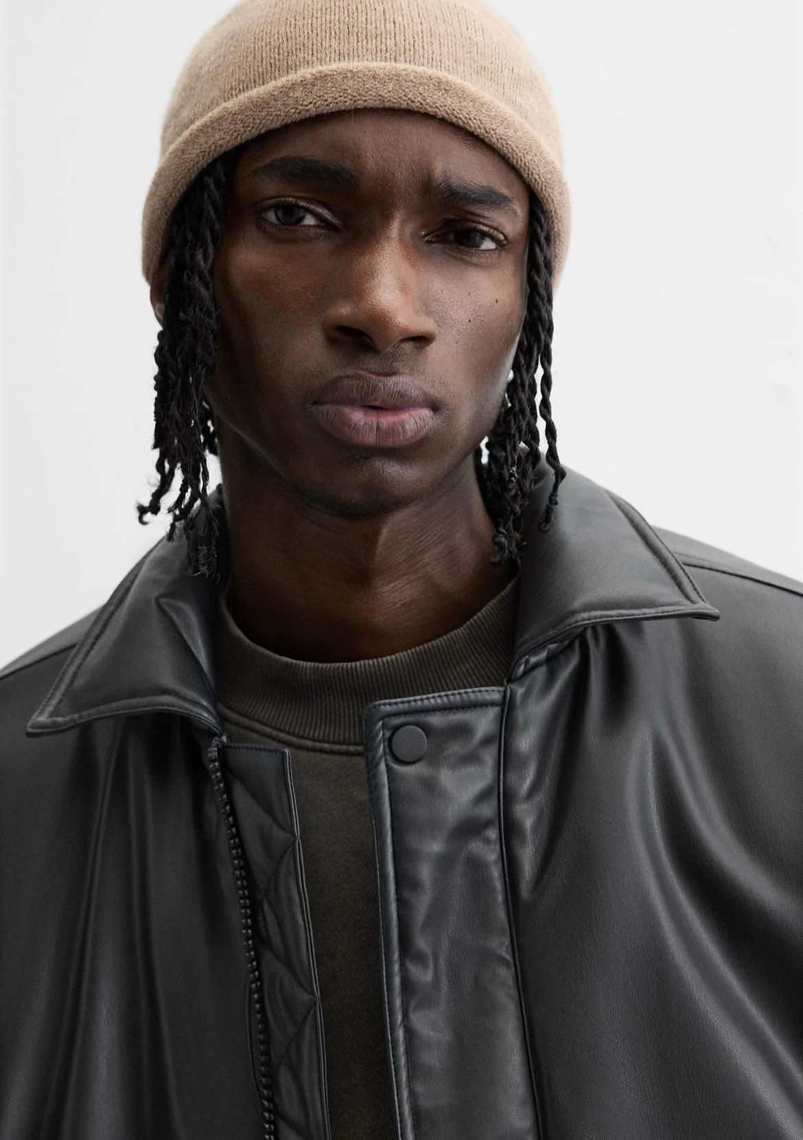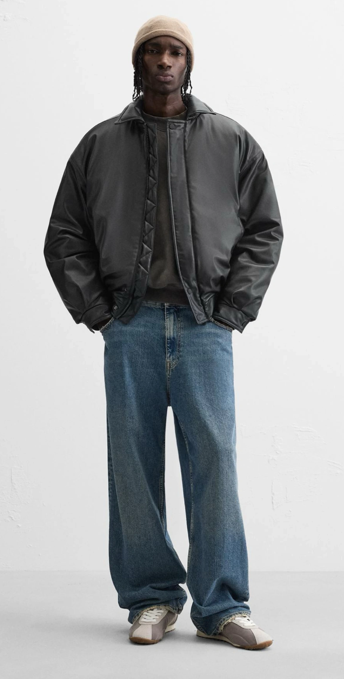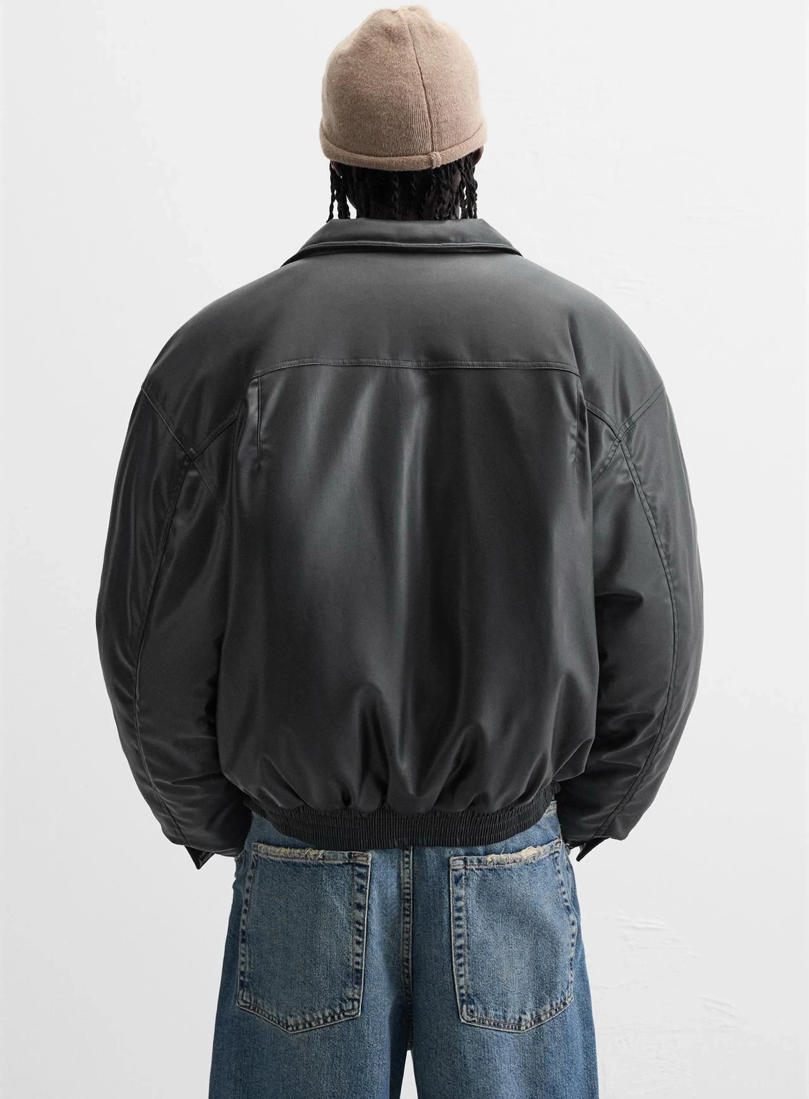 Erkek Owersize Jel Dolgu Deri Mont-Siyah