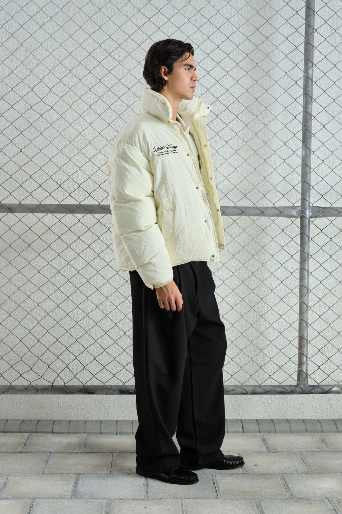 Erkek Owersize Jel Dolgu Şişme Mont- Beyaz