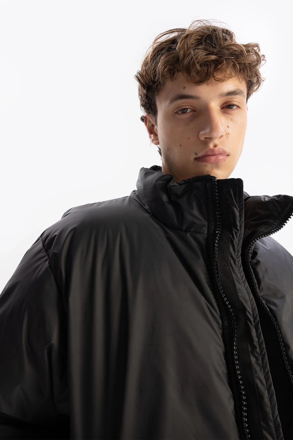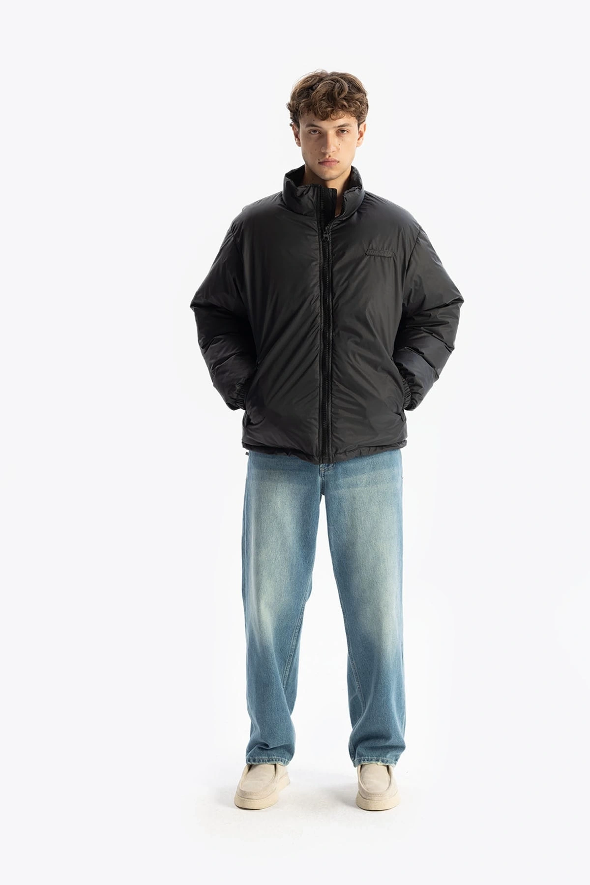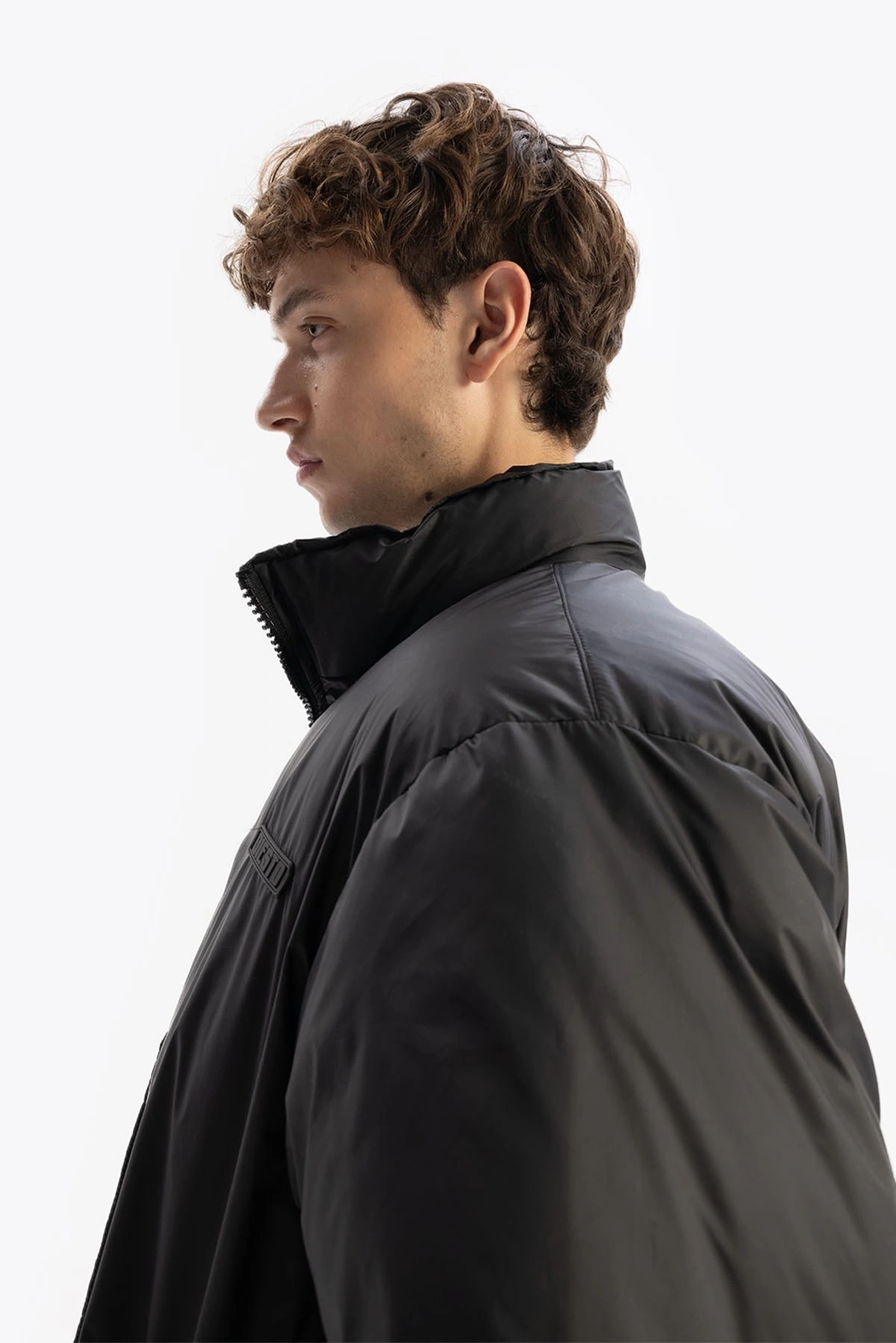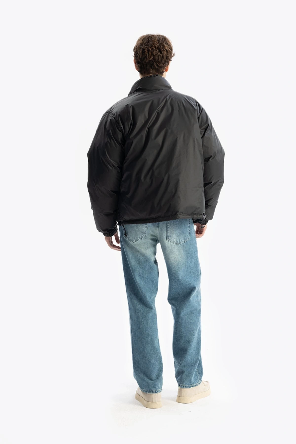 Erkek Owersize Jel Dolgu Şişme Mont-Siyah