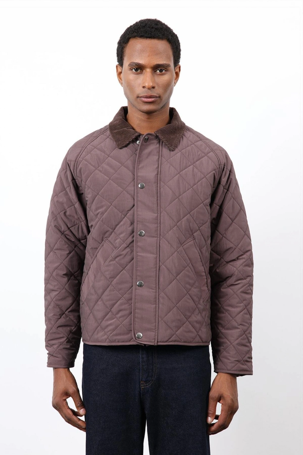 Erkek Owersize Kalıp Yakası Kadife Baklava Desenli Mont- Bordo