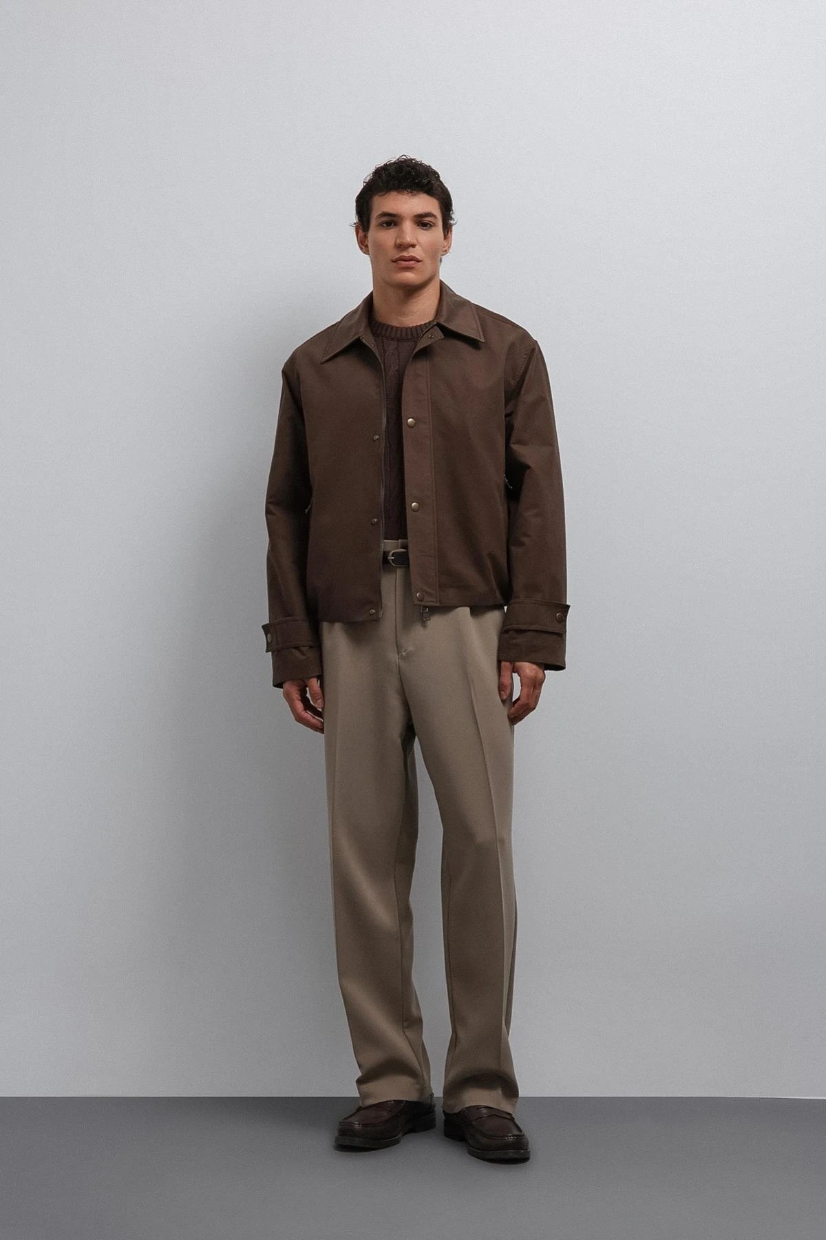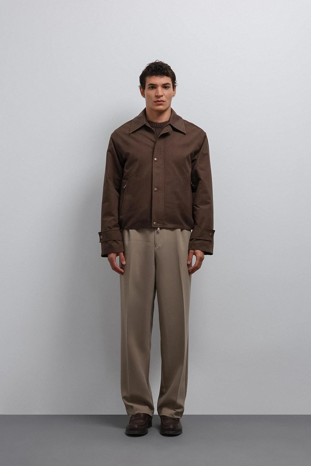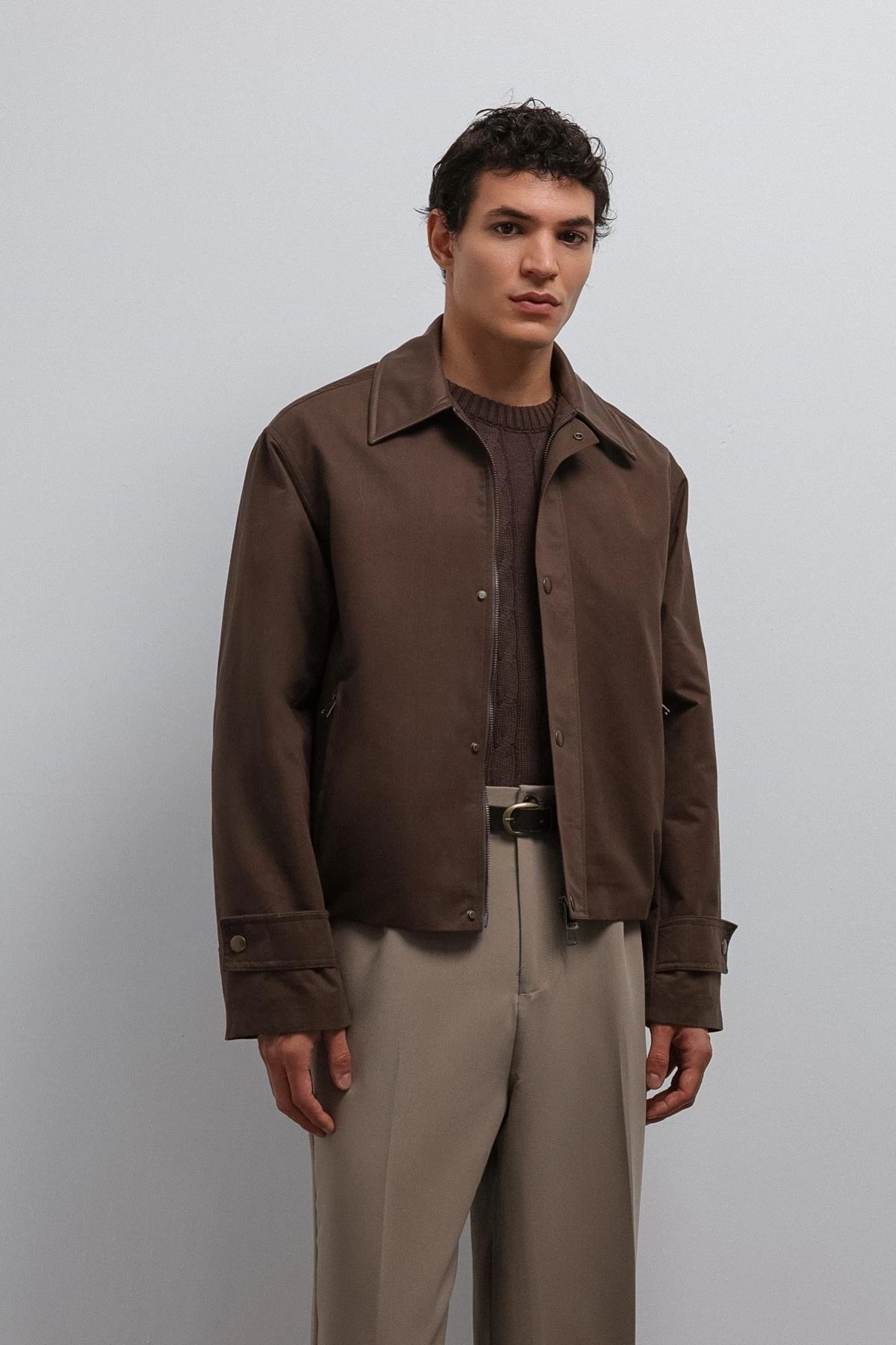 Erkek Owersize Kalıp Yakası Süet Mont- Kahverengi