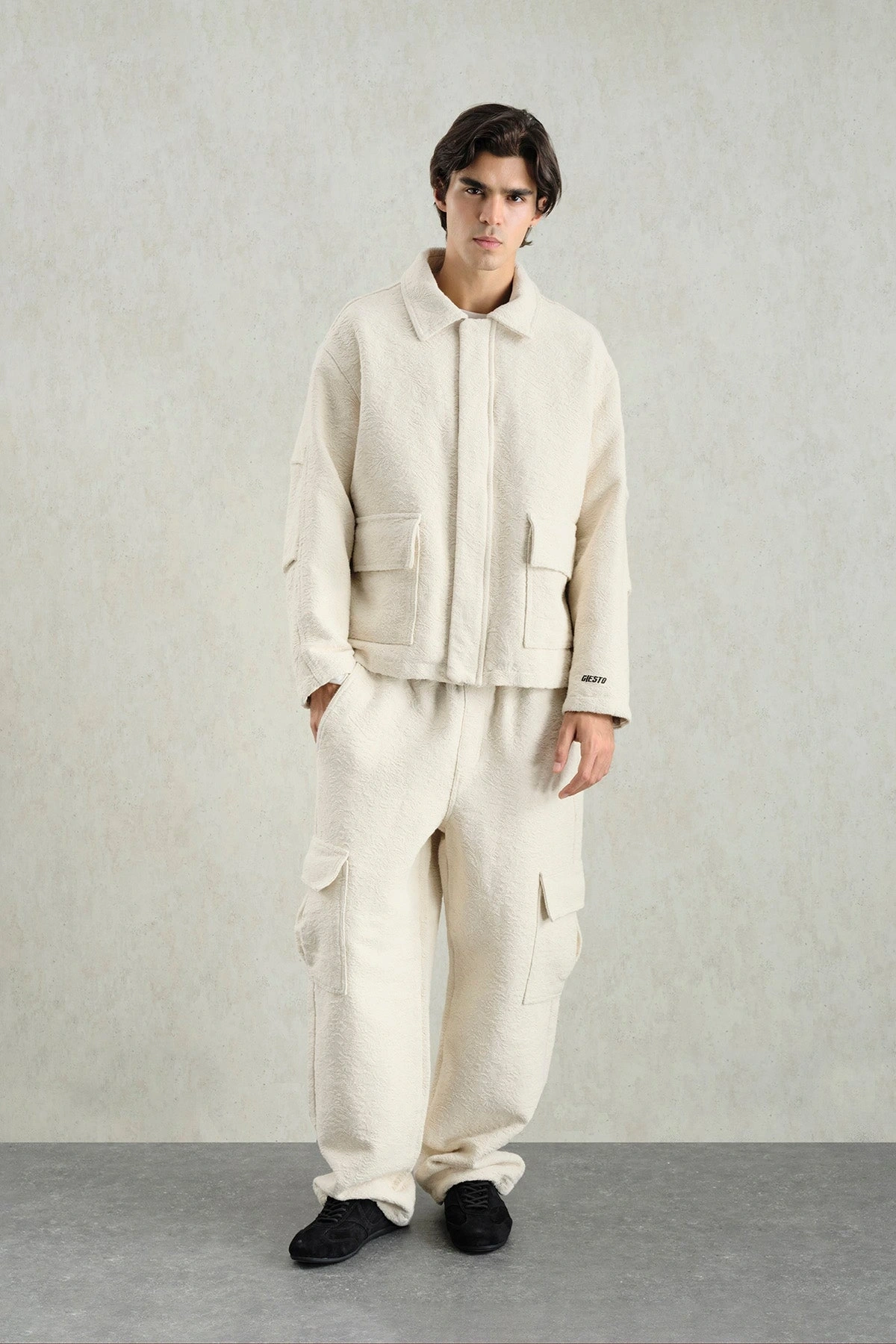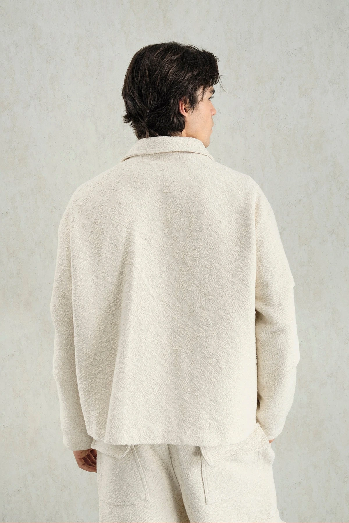 Erkek Owersize Kaşe Bomber Kendinden Desenli Mont -Bej
