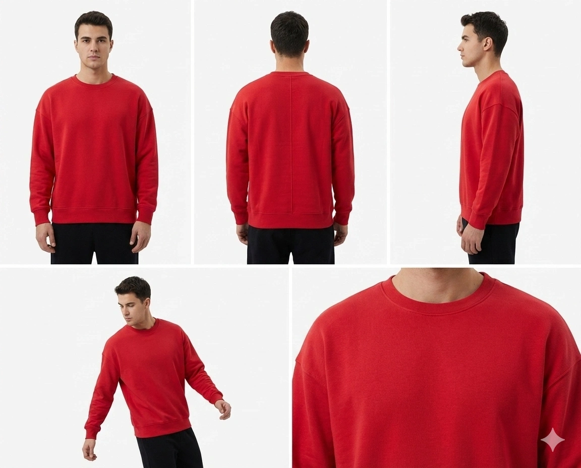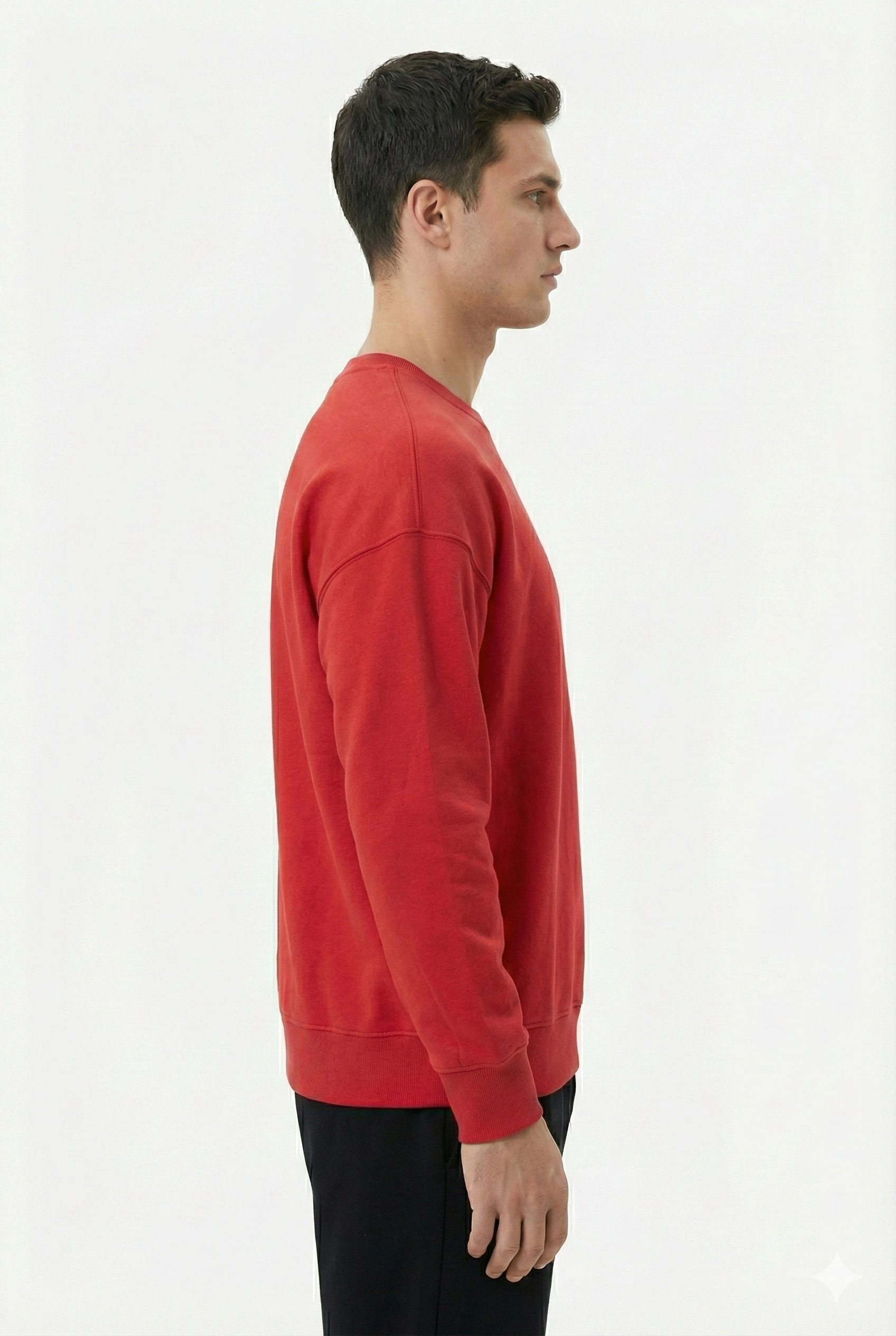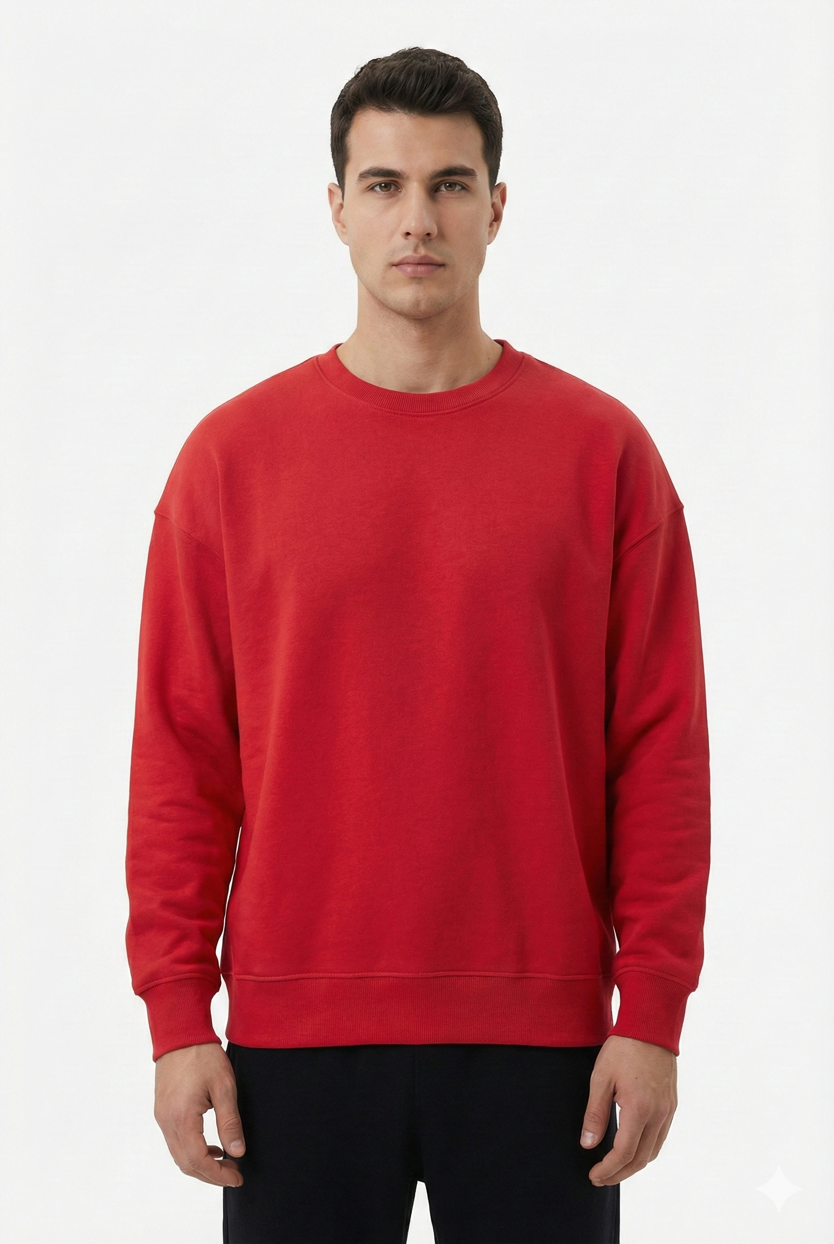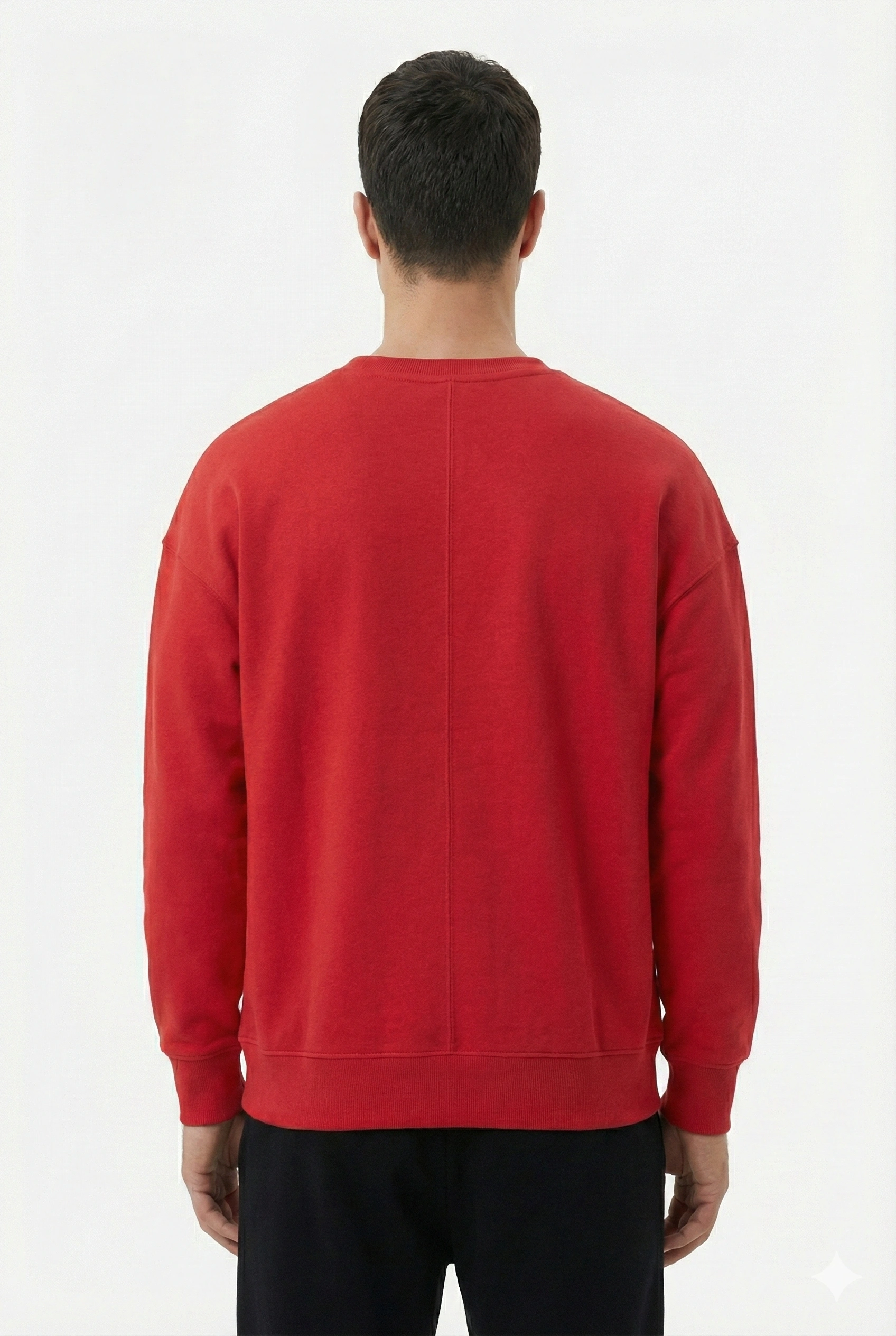 Erkek Owersize Önü Baskılı Düz Basic Sweatshirt- Kırmızı
