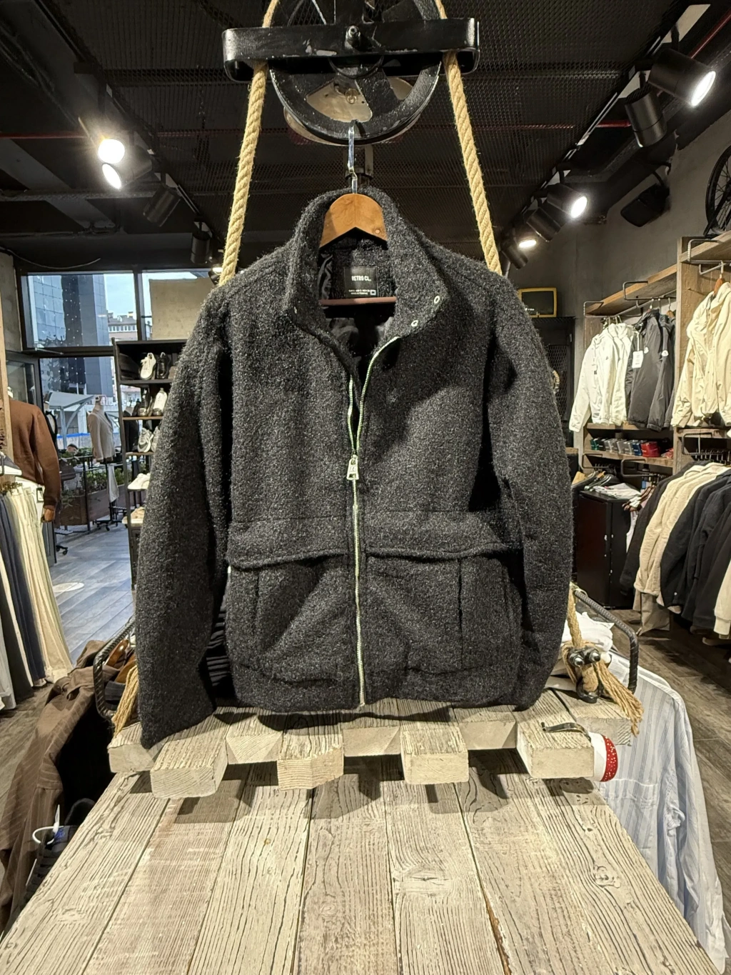 Erkek Owersıze Önü Fermuarlı Kaşe Mont - Füme