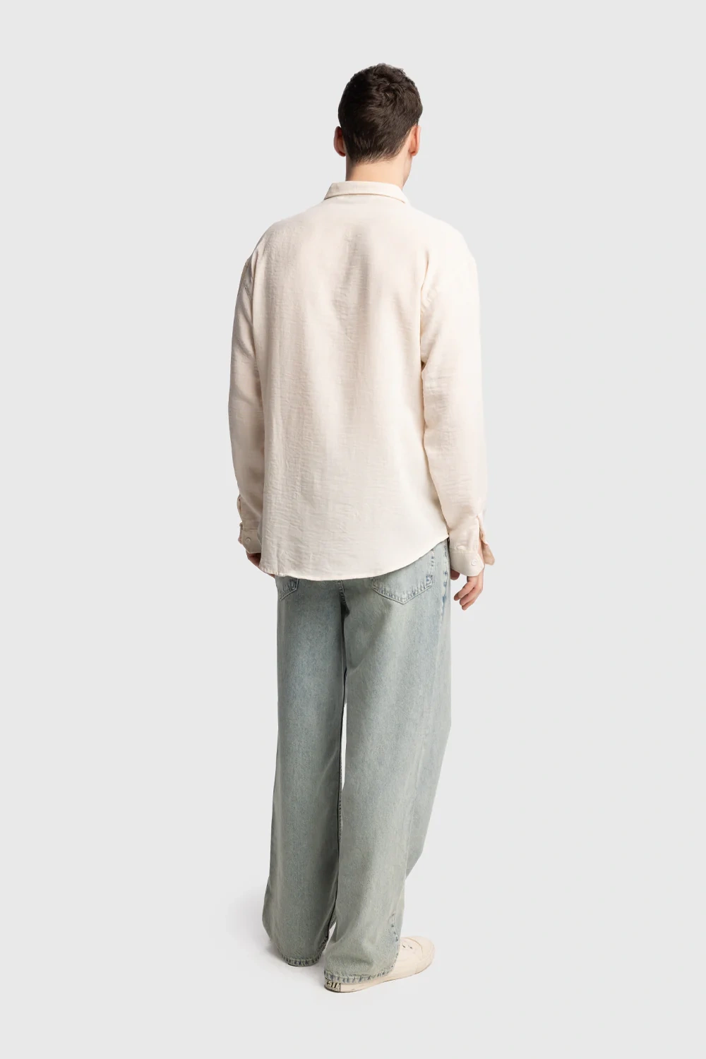 Erkek Owersize Uzun Kol Keten Gömlek- Ekru