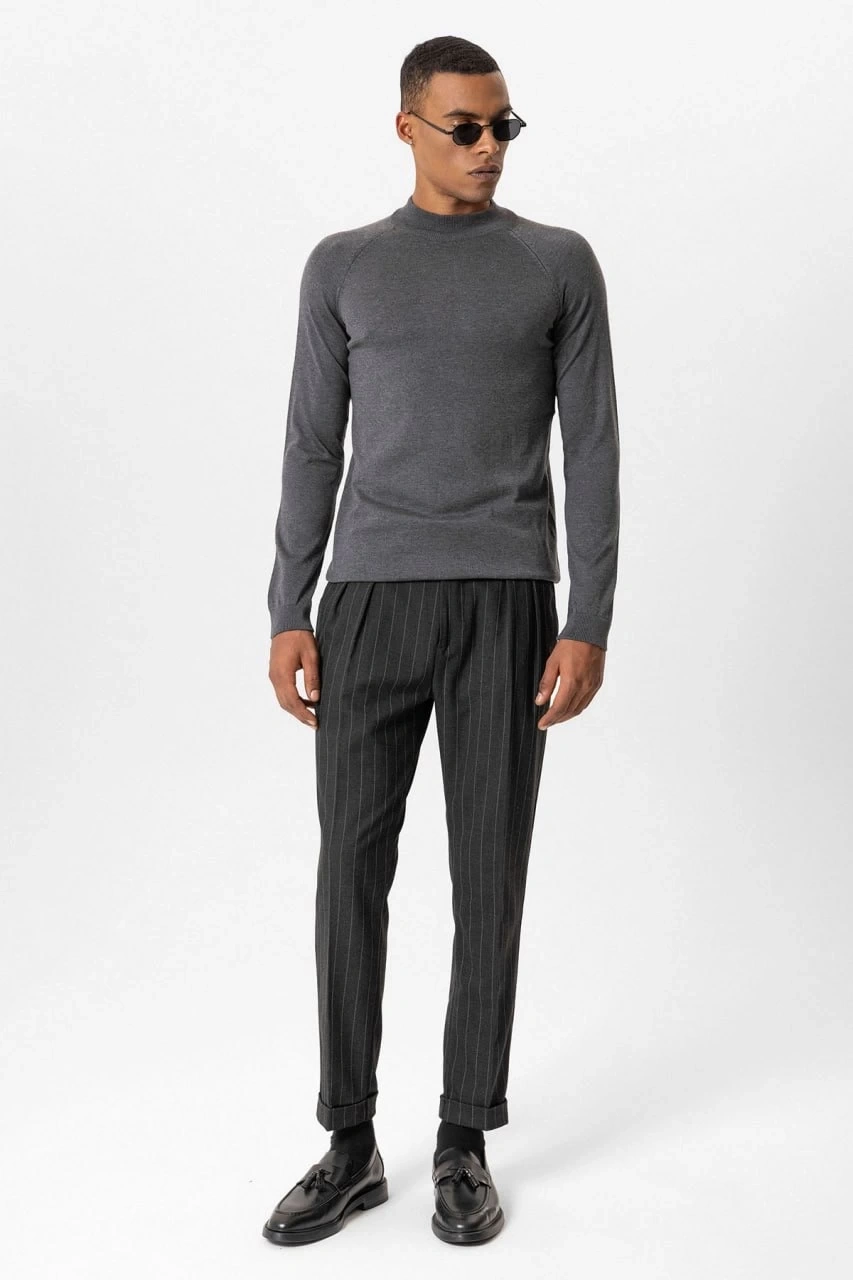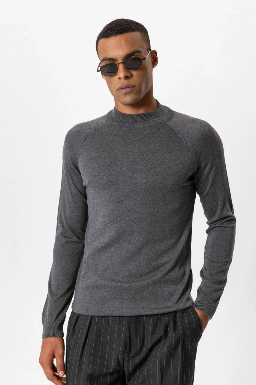 Erkek Owersize Yarım Balıkçı Triko Kazak - Gri