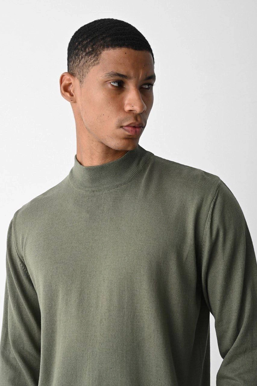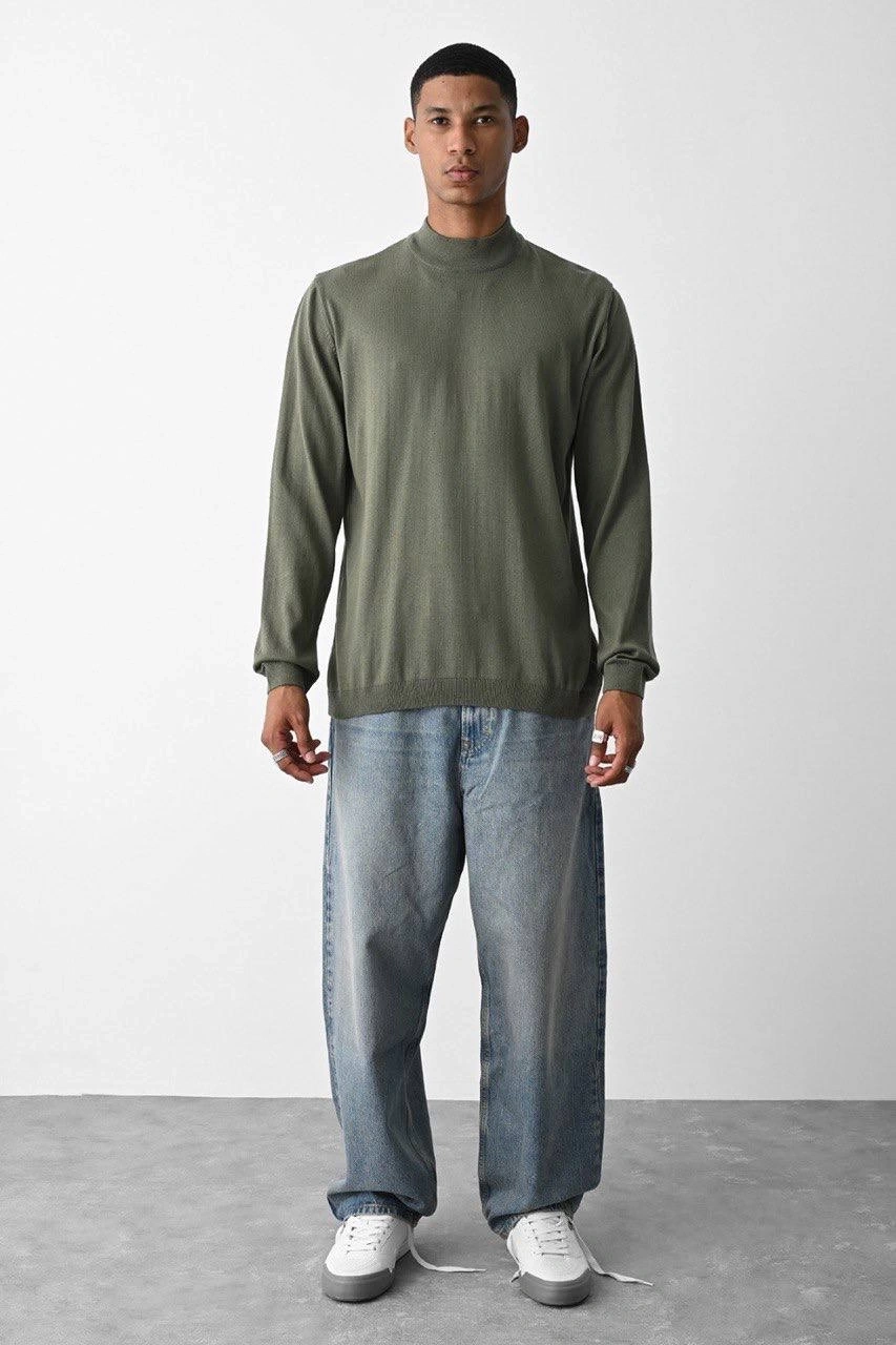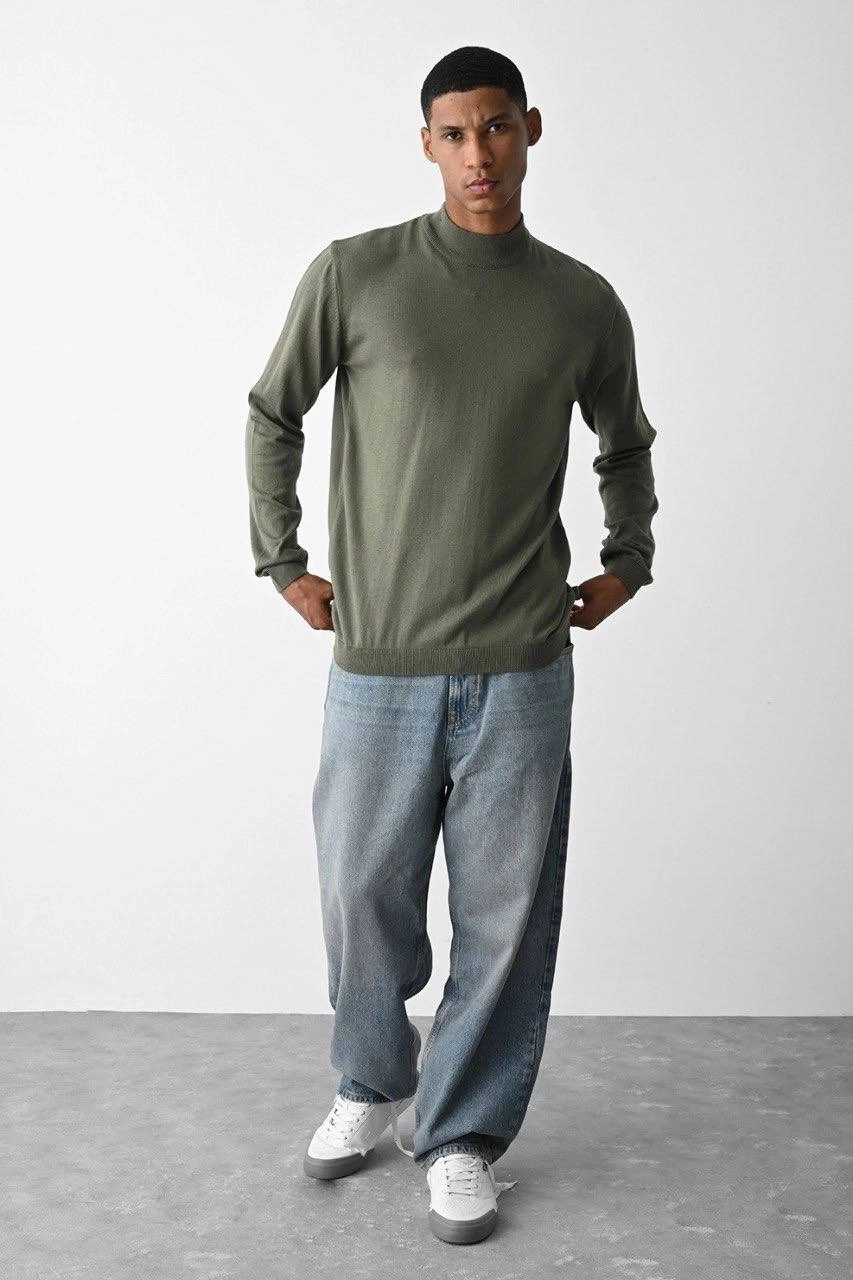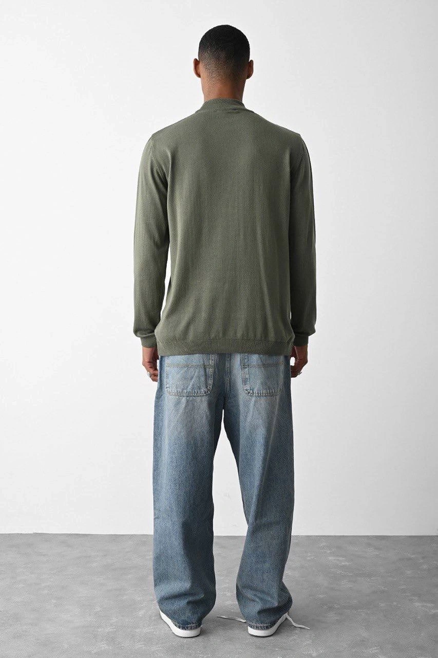 Erkek Owersize Yarım Balıkçı Triko Kazak - Haki