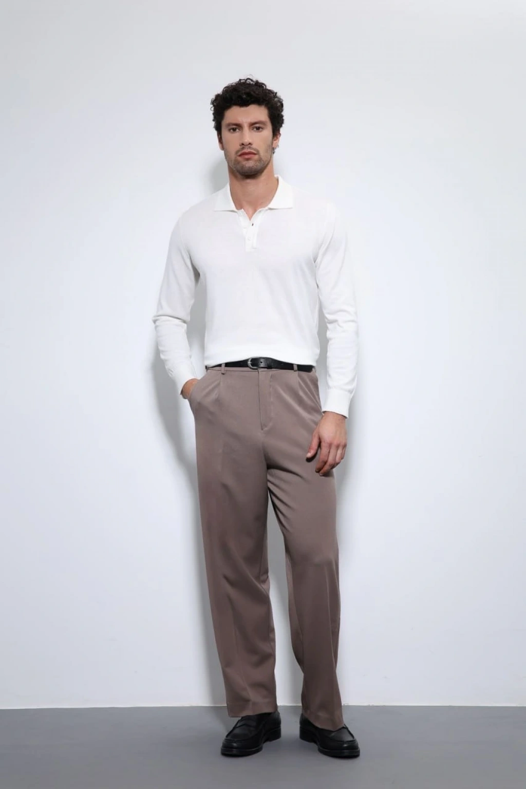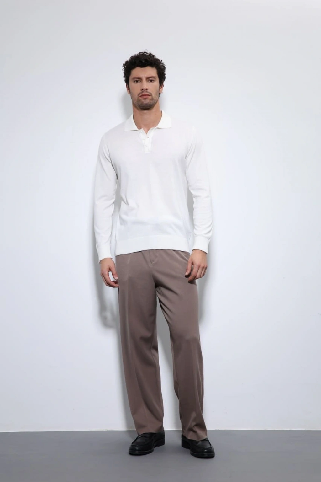 Erkek Polo Yaka Uzunkol Pamuklu Triko -Beyaz