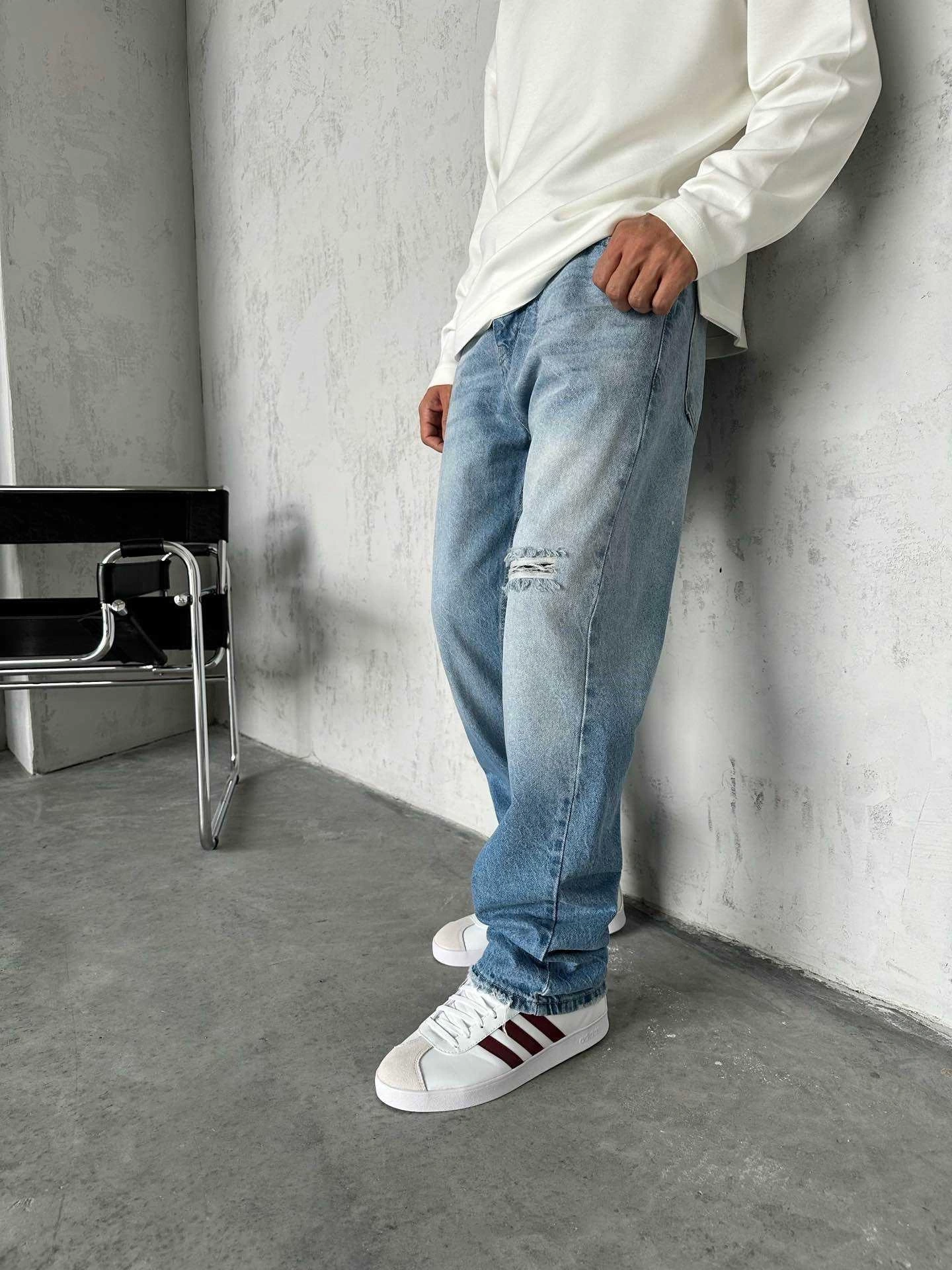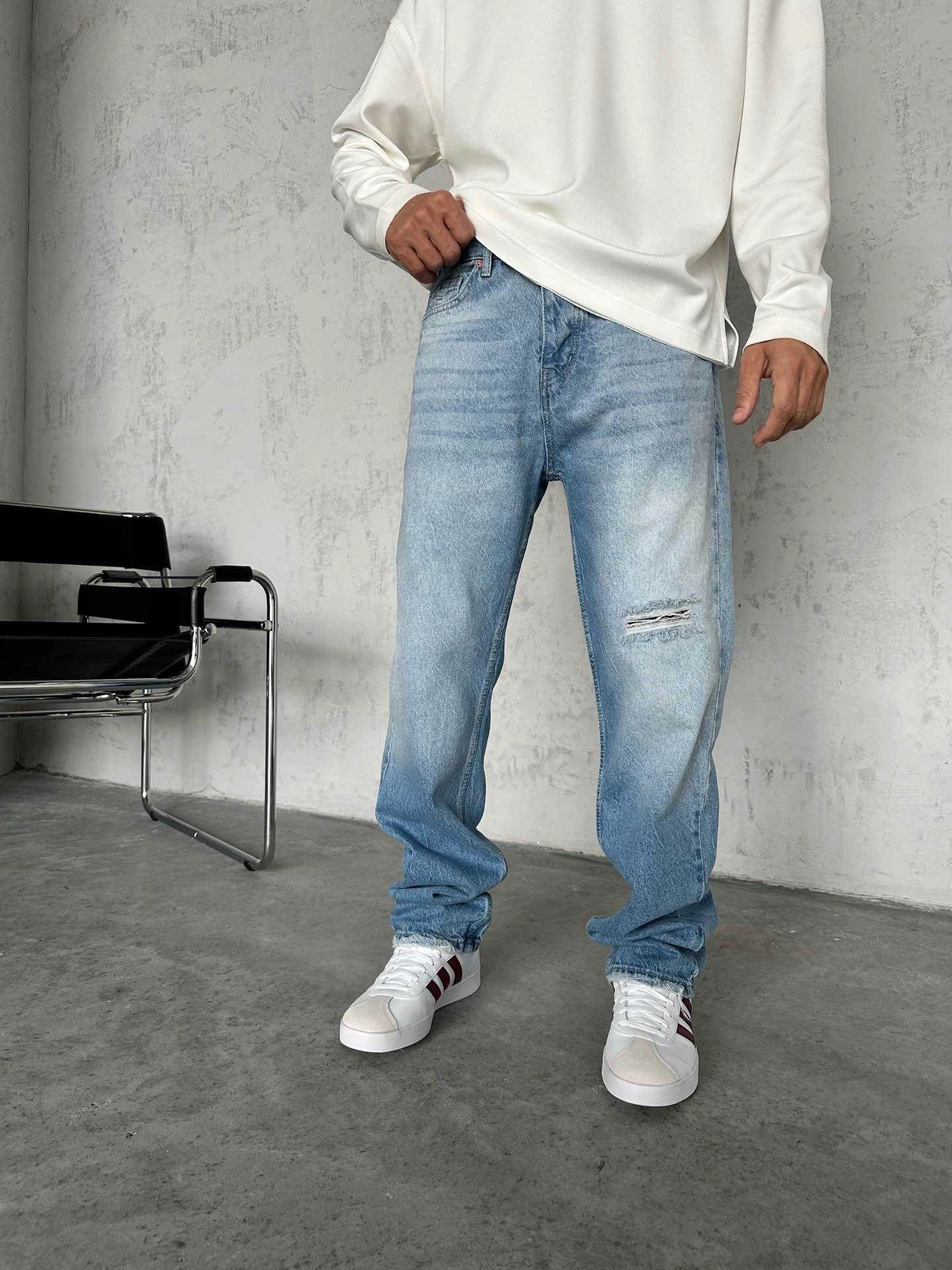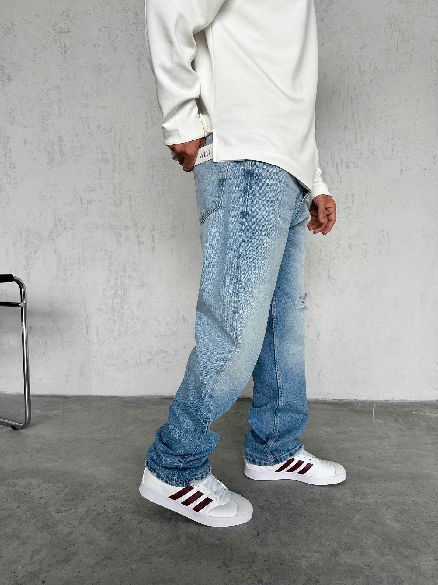 Erkek Rahat Kalıp Baggy Kot Pantolon -A Mavi