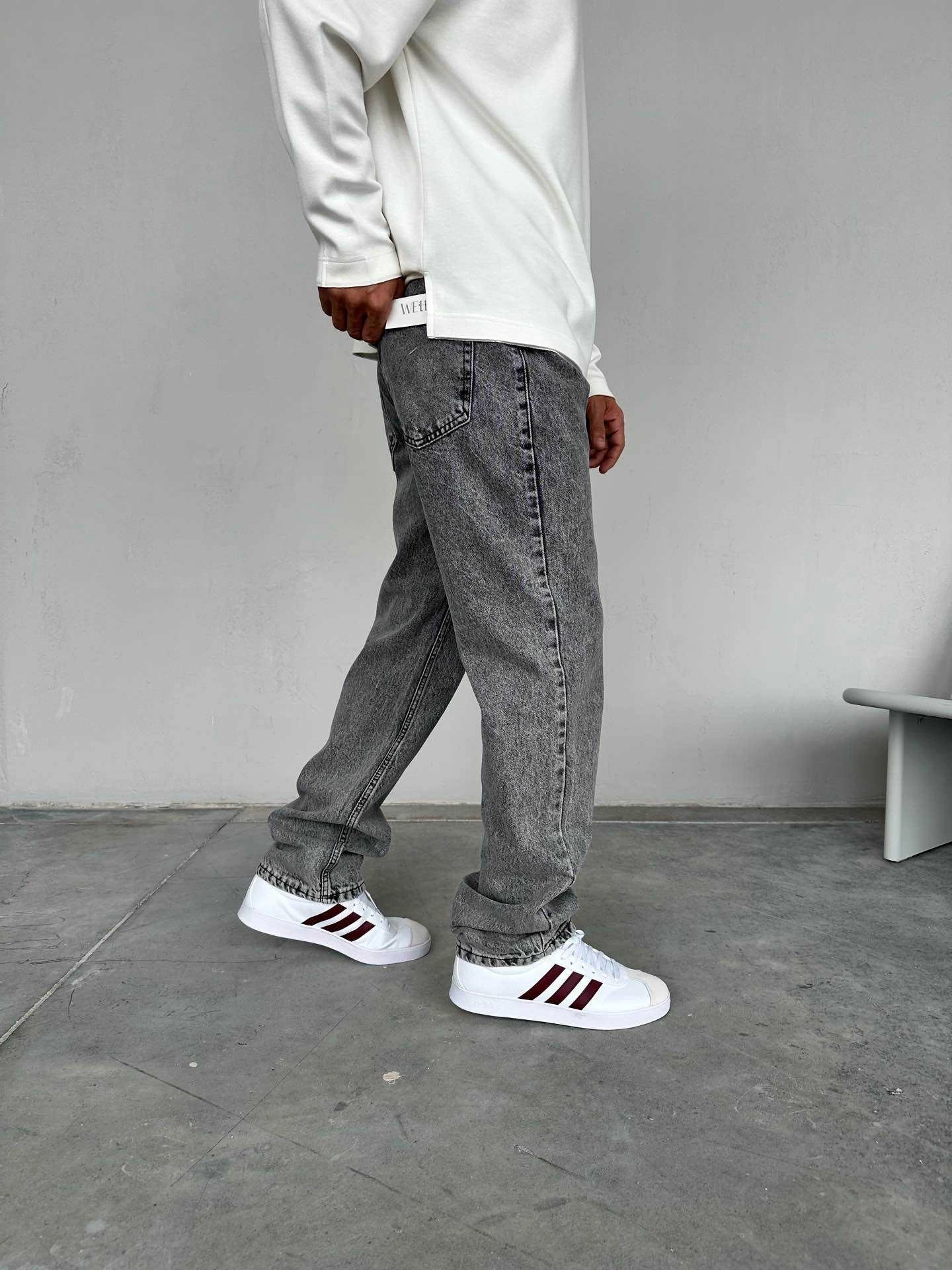 Erkek Rahat Kalıp Baggy Kot Pantolon -Açık Gri
