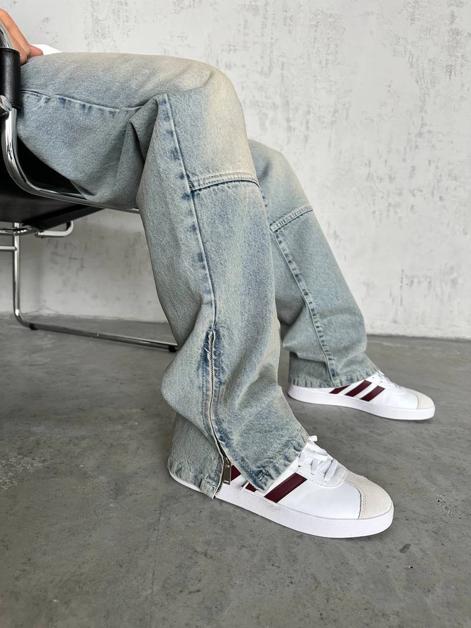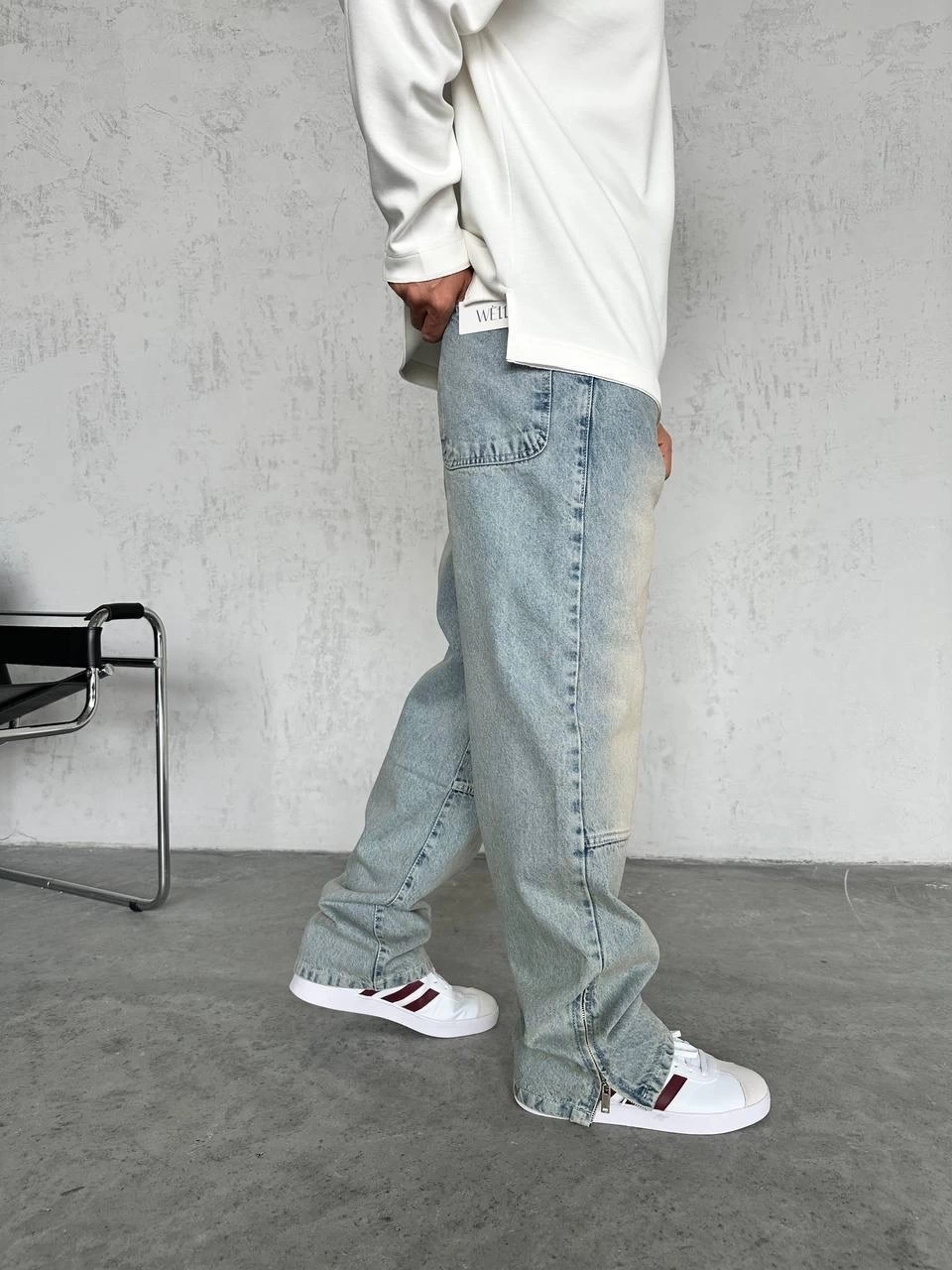 Erkek Rahat Kalıp Taşlamalı Kar Yıkamalı Baggy Kot Pantolon -Krem M