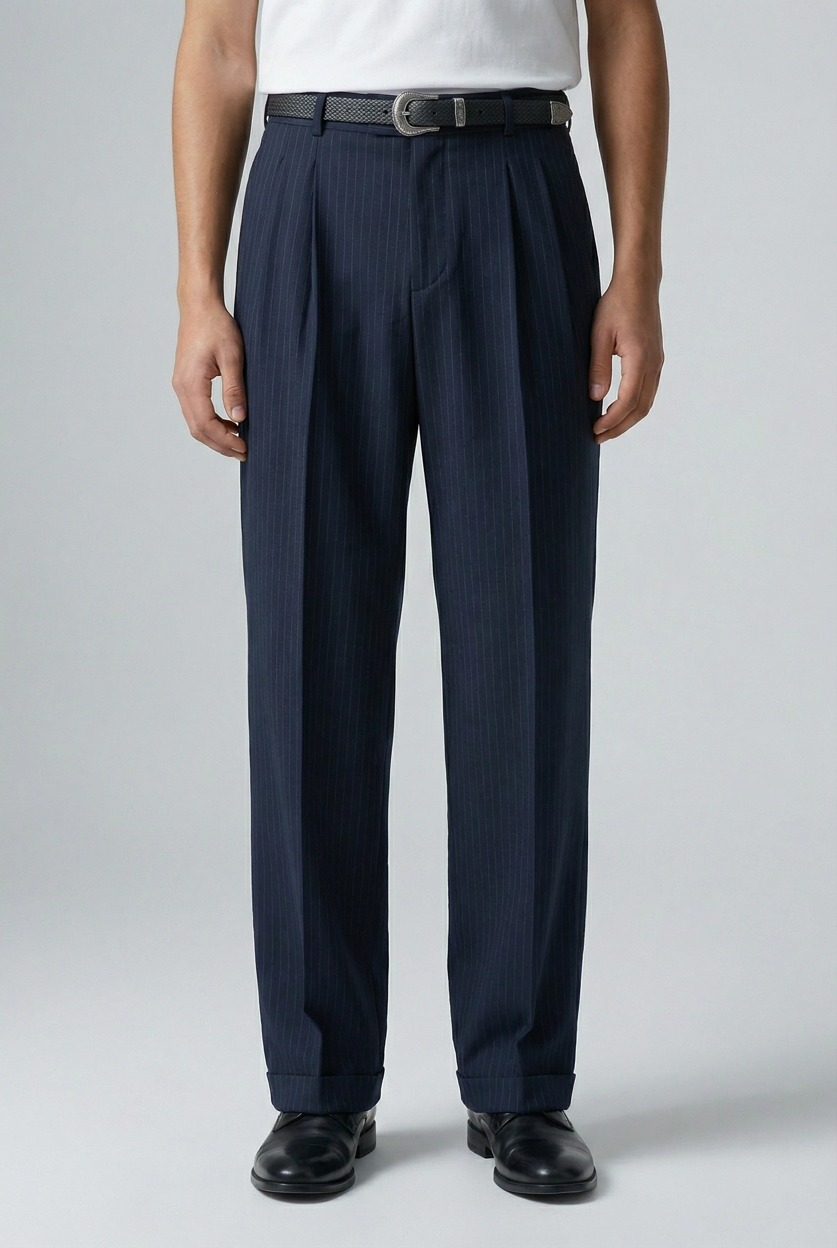 Erkek Rahat Kesim Bagy Çizgili Pantolon- Lacivert