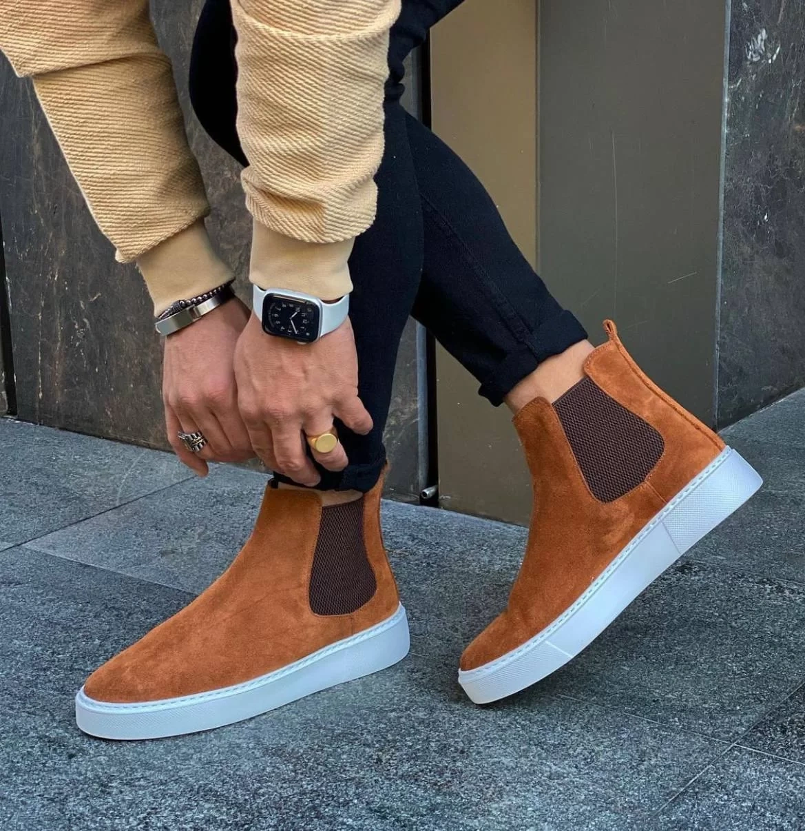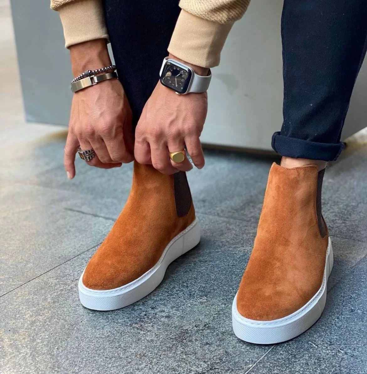Yeni Sezon Erkek Eva Taban Deri Chelsea Bot - Taba
