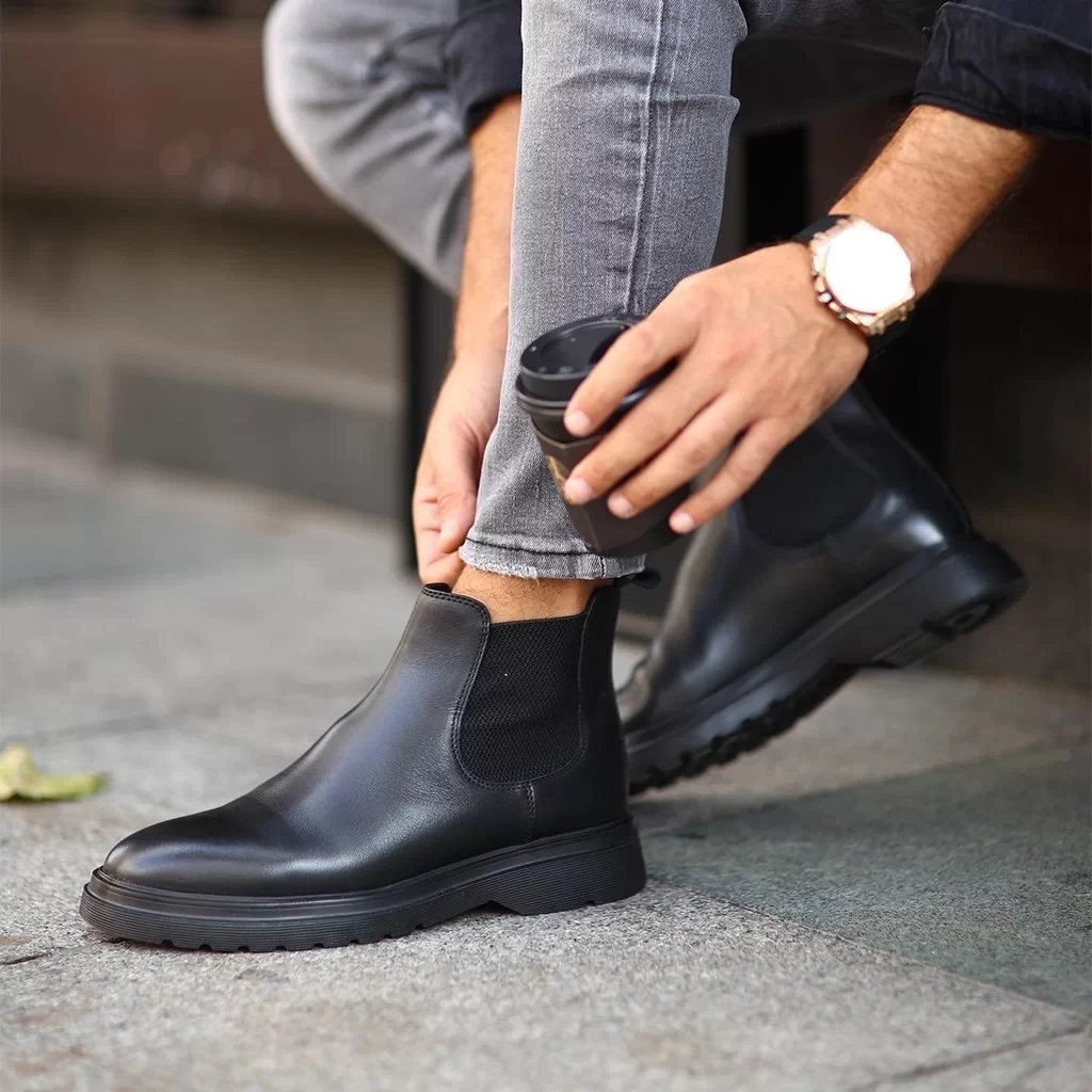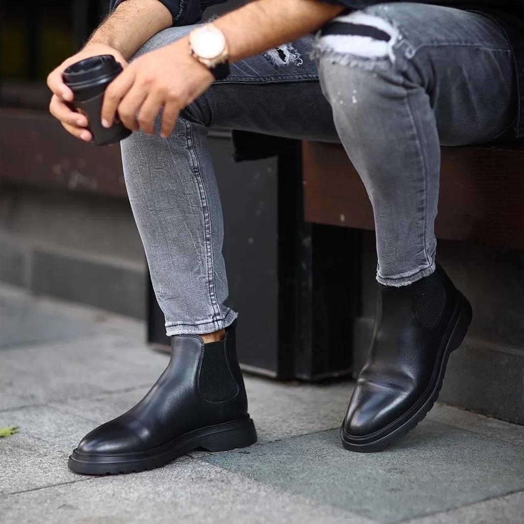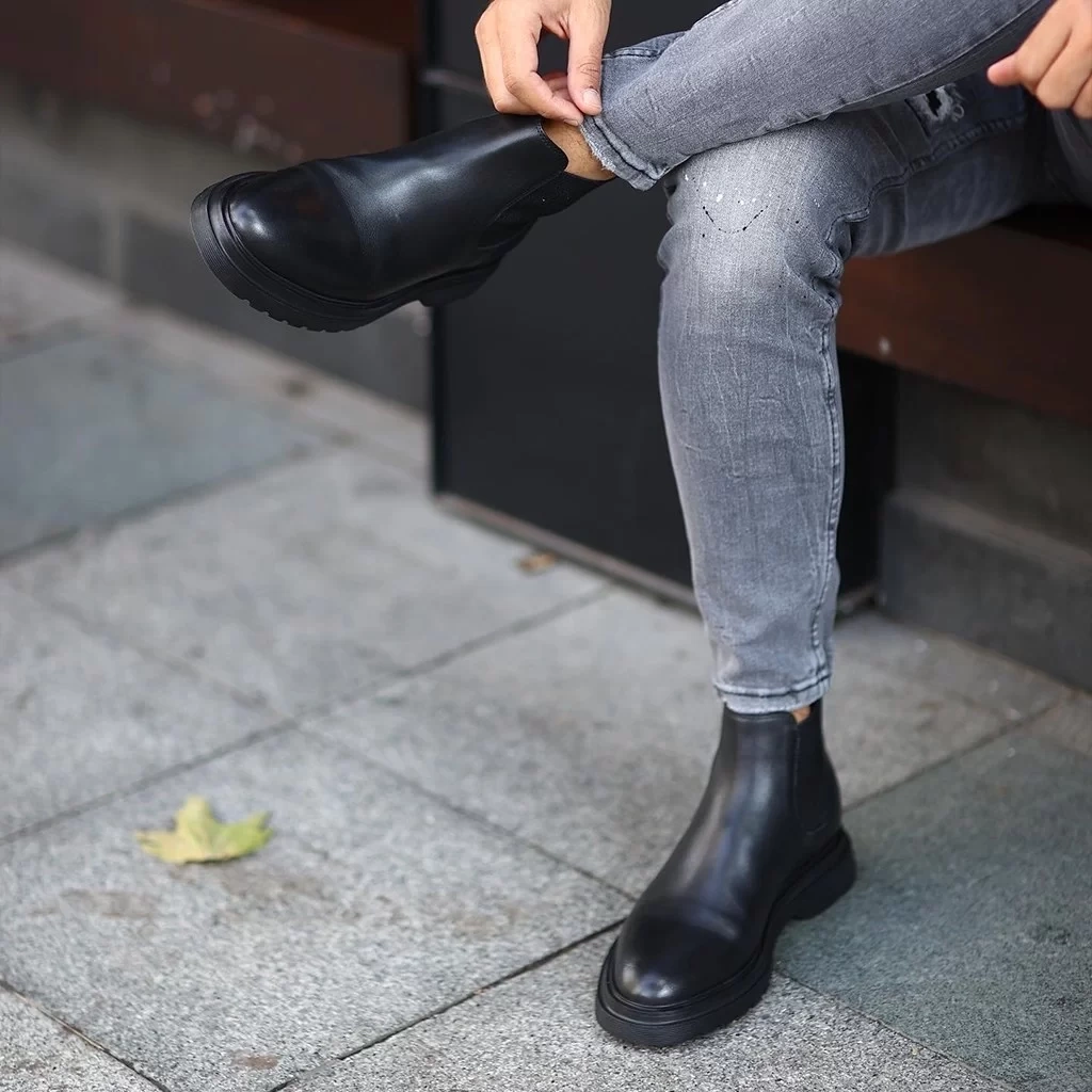 Yeni Sezon Erkek Eva Taban Deri Chelsea Casual Bot - Siyah